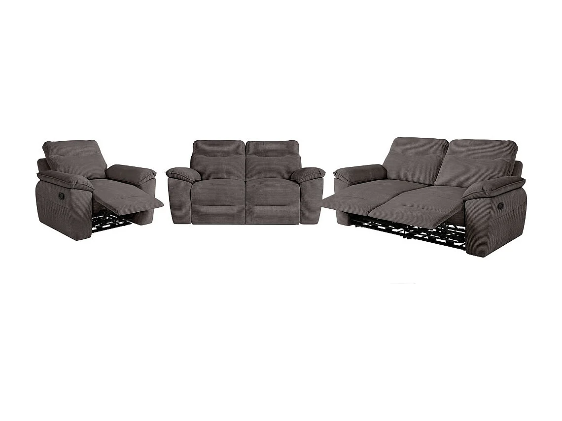 Canapés de relaxation ROSS manuels 3 et 2 places et fauteuil en velours côtelé - Gris