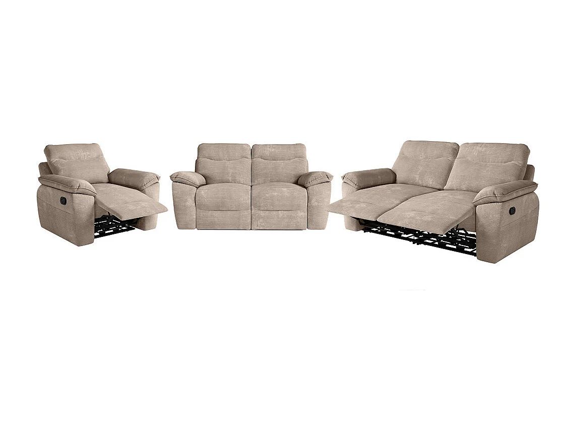 Canapés de relaxation ROSS manuels 3 et 2 places et fauteuil en velours côtelé - Taupe
