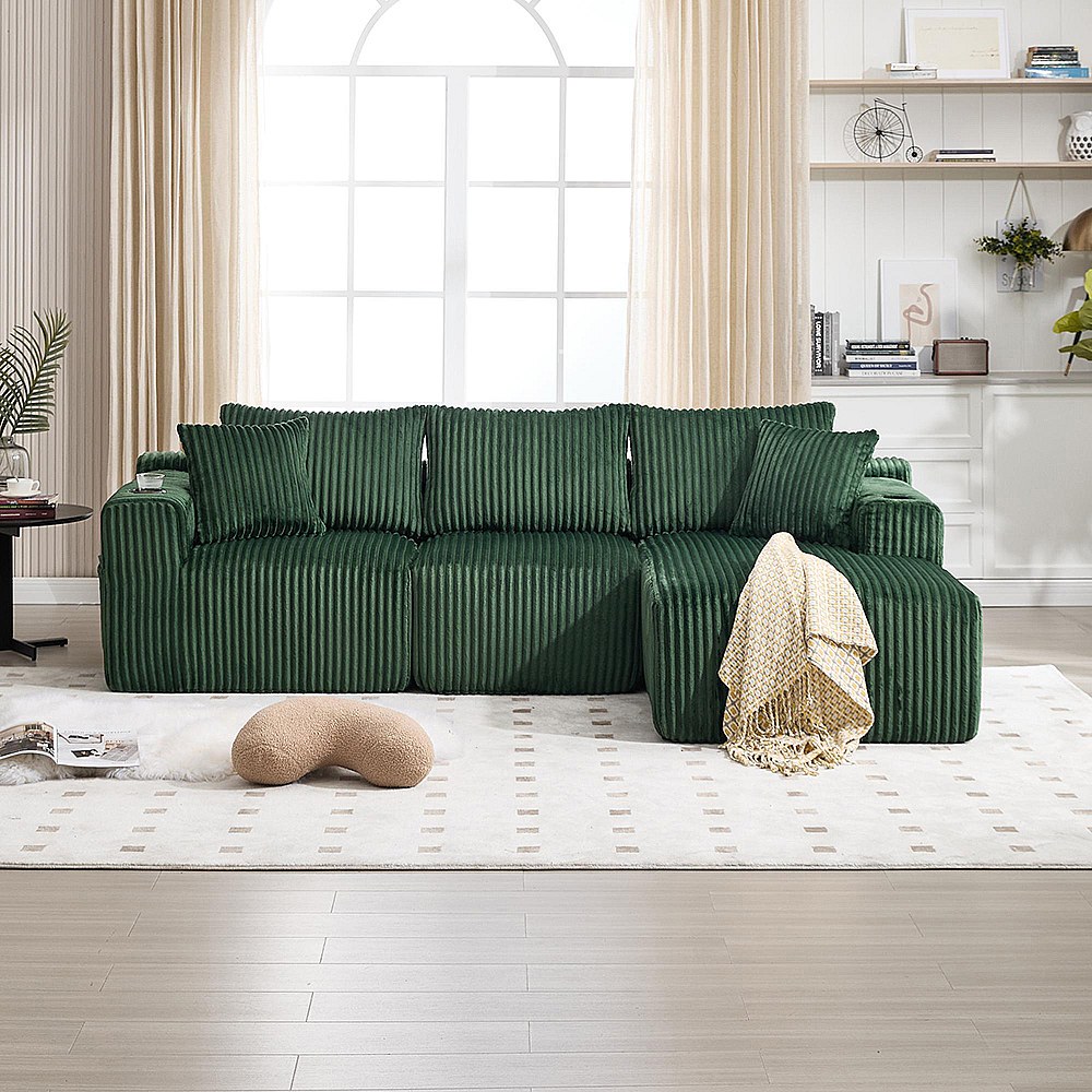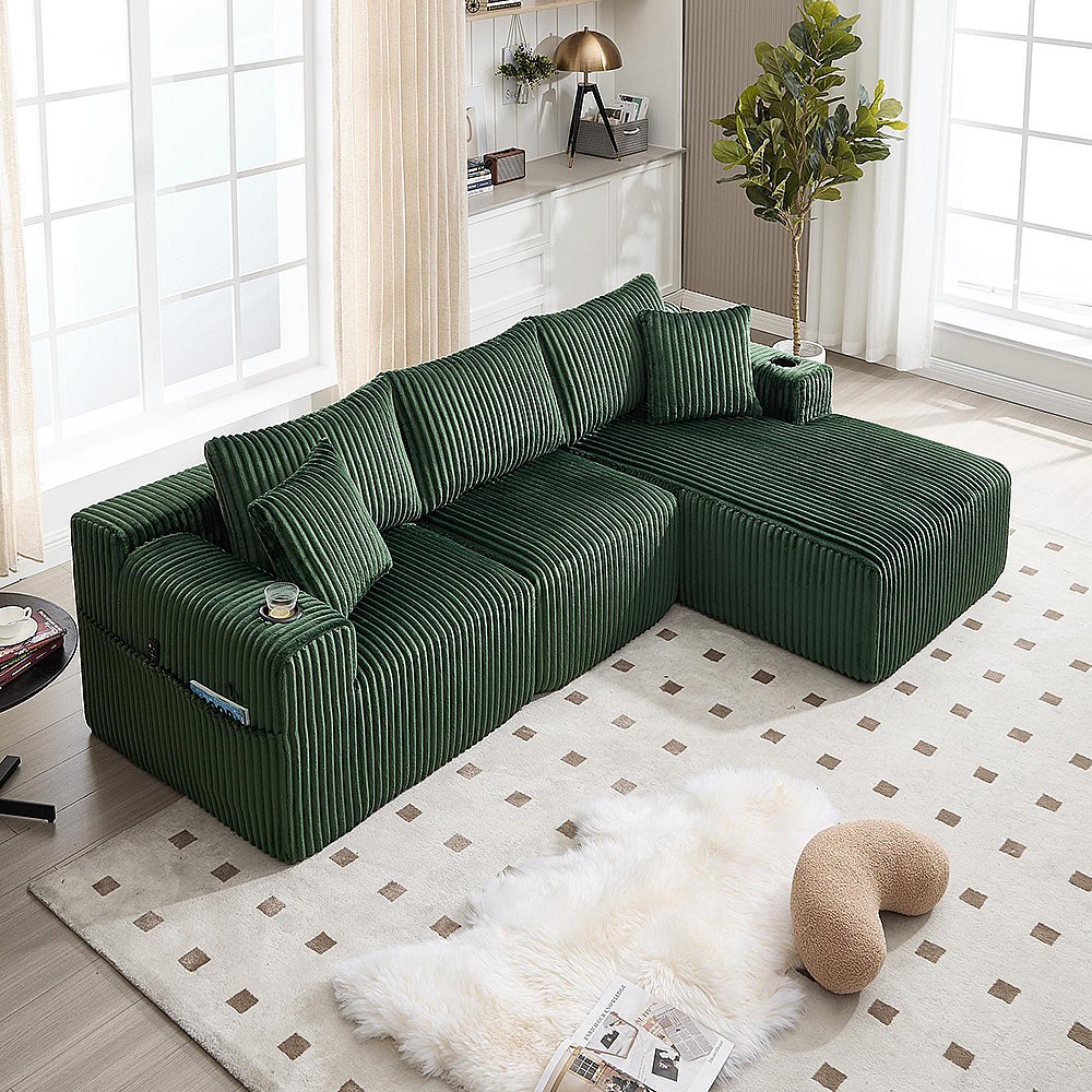 Canapés modulaires chaise longue 2 places velours doux 5 coussins poches porte-gobelets mousse dense DIY salon studio Émeraude