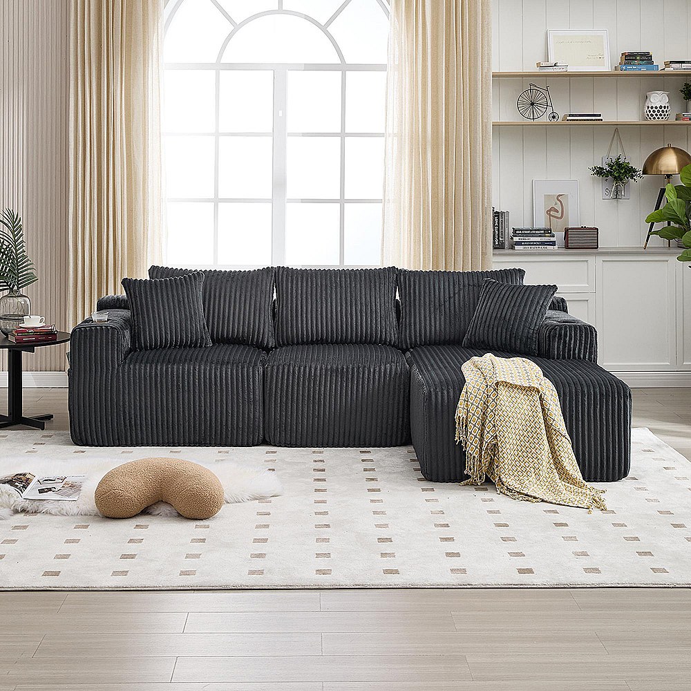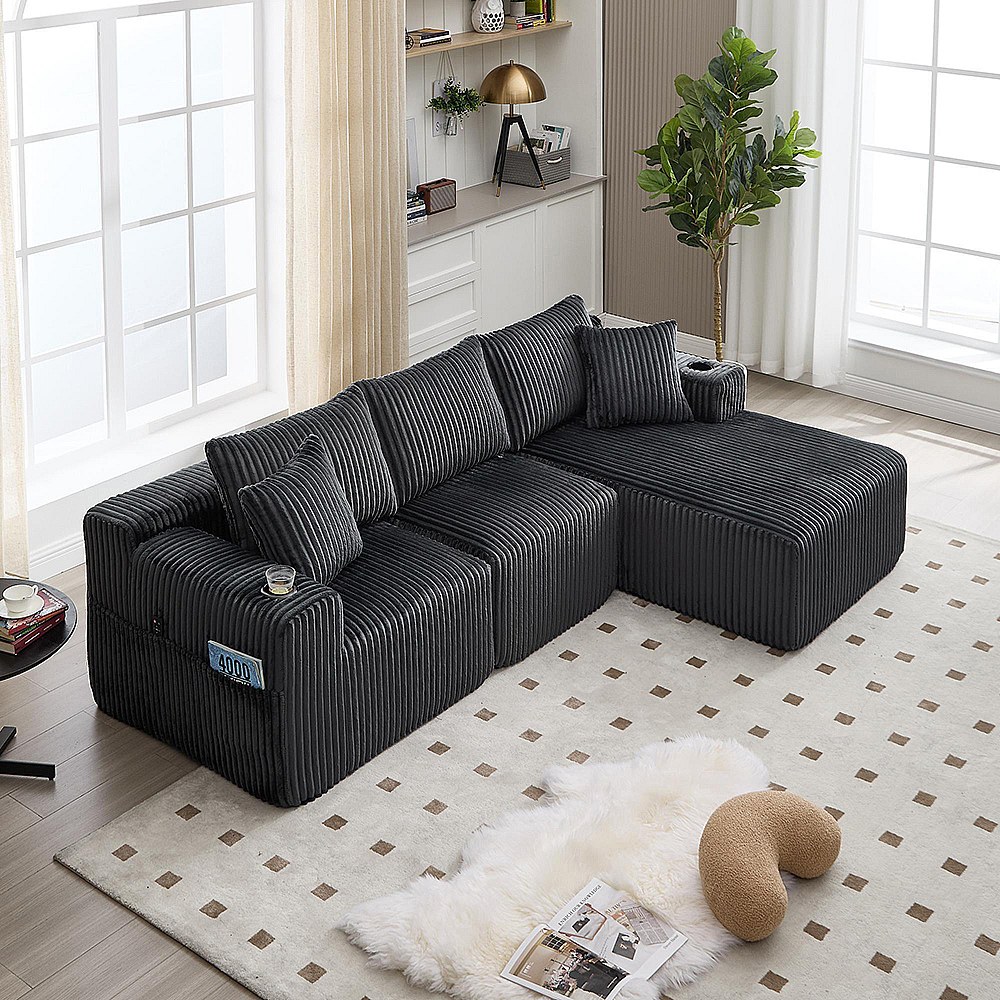 Canapés modulaires chaise longue 2 places velours doux 5 coussins poches porte-gobelets mousse dense DIY salon studio gris