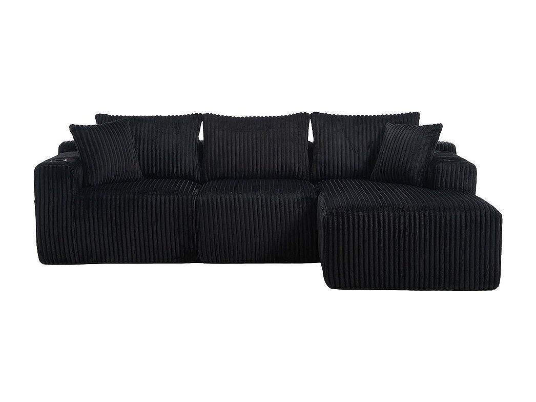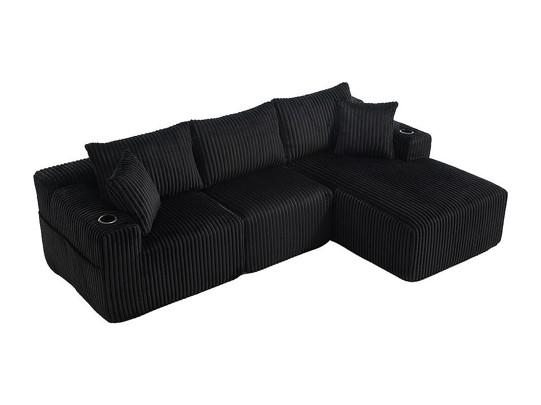 Canapés modulaires chaise longue 2 places velours doux 5 coussins poches porte-gobelets mousse dense DIY salon studio noir