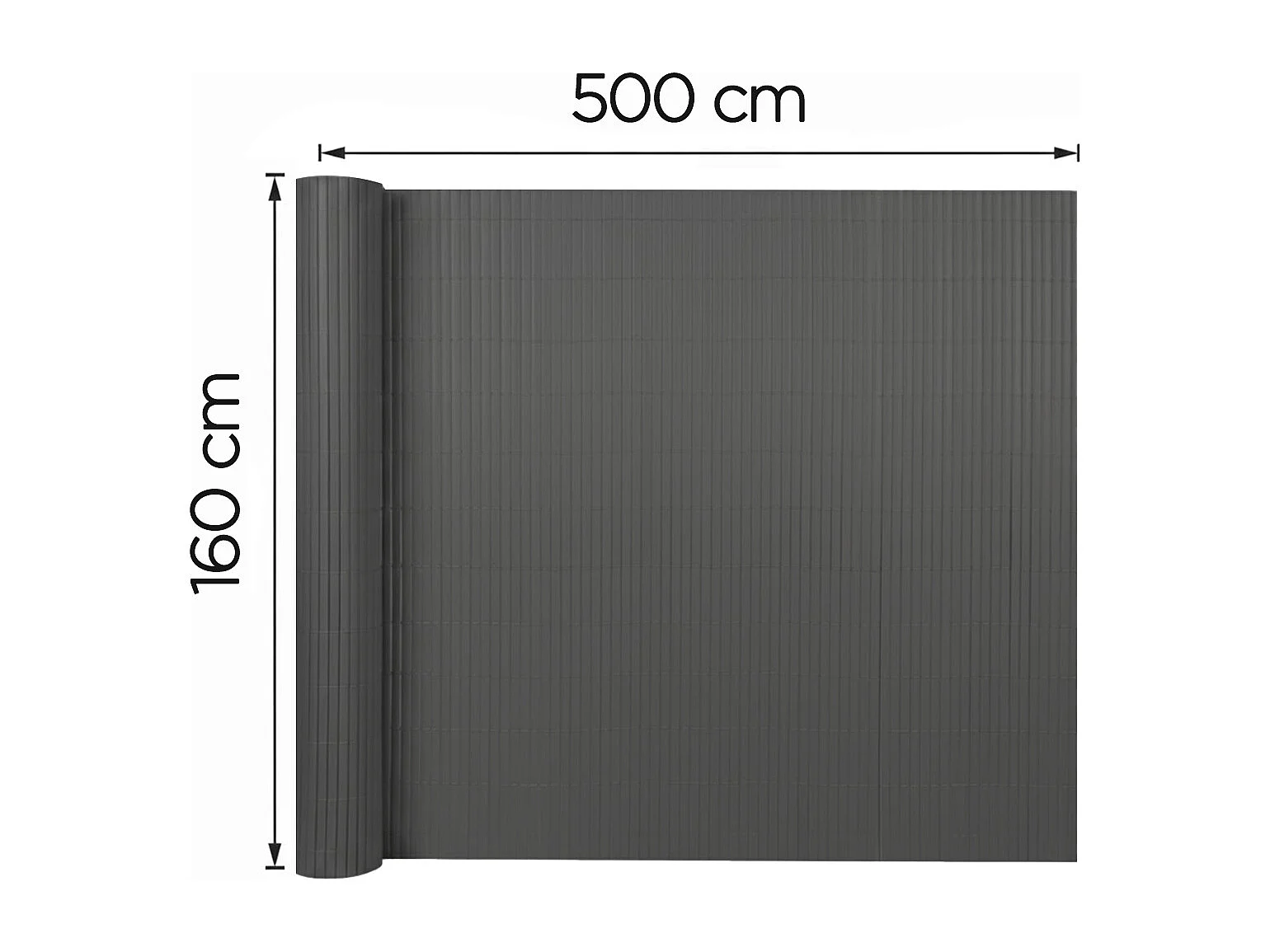 Canisse Brise vue en PVC tube Plat,Clôture protection pour jardin terasse balcon coloris Gris - Hauteur 160 x Longueur 500 cm 1700g/m2