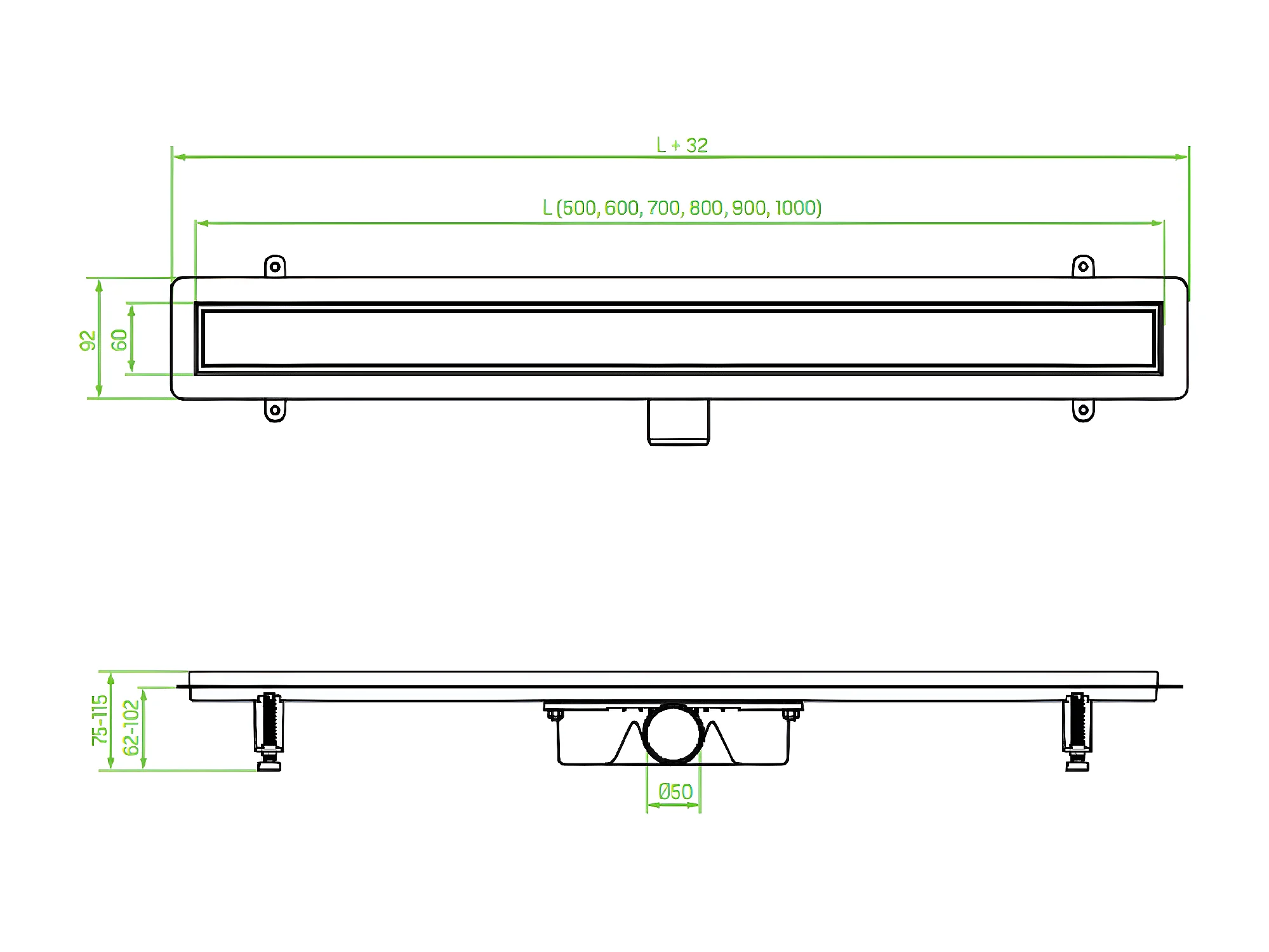 Caniveau de douche BASSO, couleur: noir, longueur:80 cm