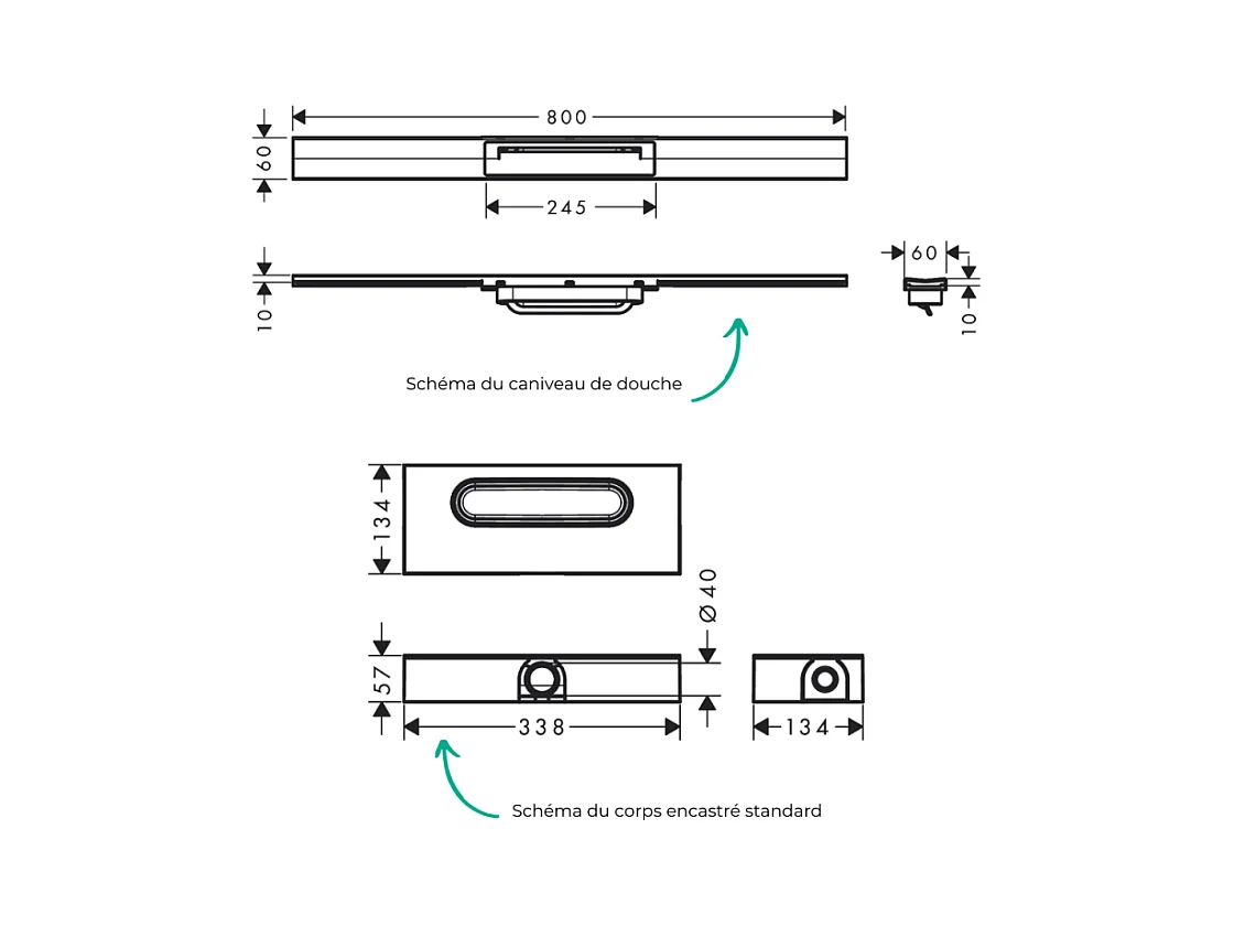 Caniveau de douche HANSGROHE RainDrain Flex 80 Aspect doré poli + Corps encastré à faible hauteur