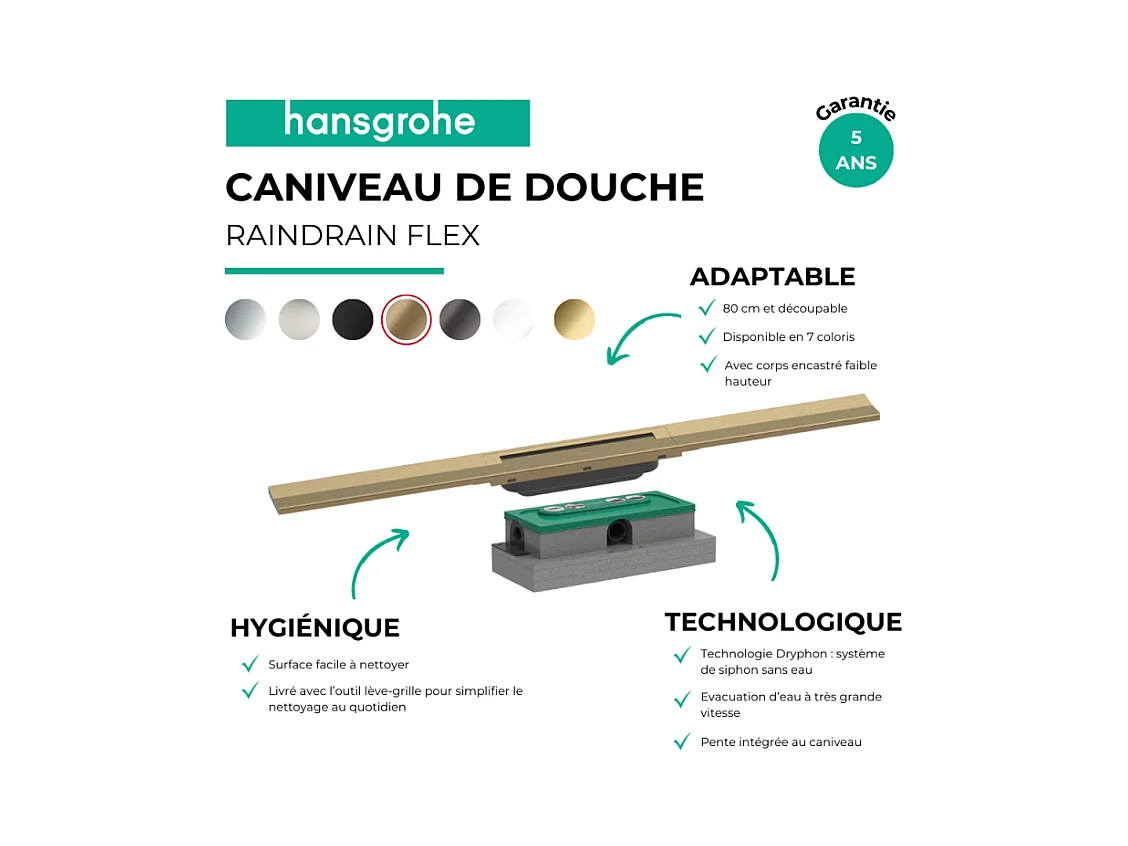 Caniveau de douche HANSGROHE RainDrain Flex 80 Bronze brossé + Corps encastré à faible hauteur