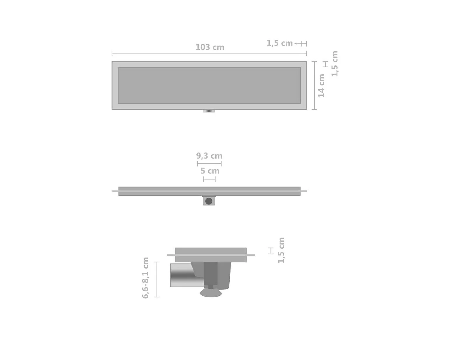Caniveau drain de douche argenté 103 x 14 x 8.1 cm 02_0003014