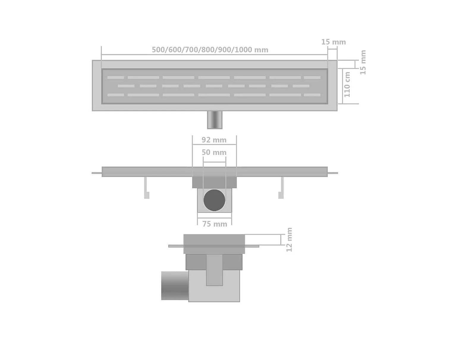 Caniveau drain de douche argenté 93 x 14 x 14 cm 02_0003021
