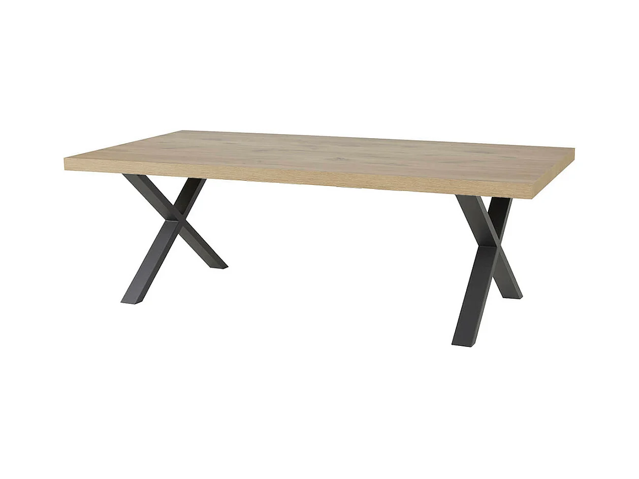 CANYON - Table Rectangulaire 230cm Aspect Bois Piètement X Métal Noir