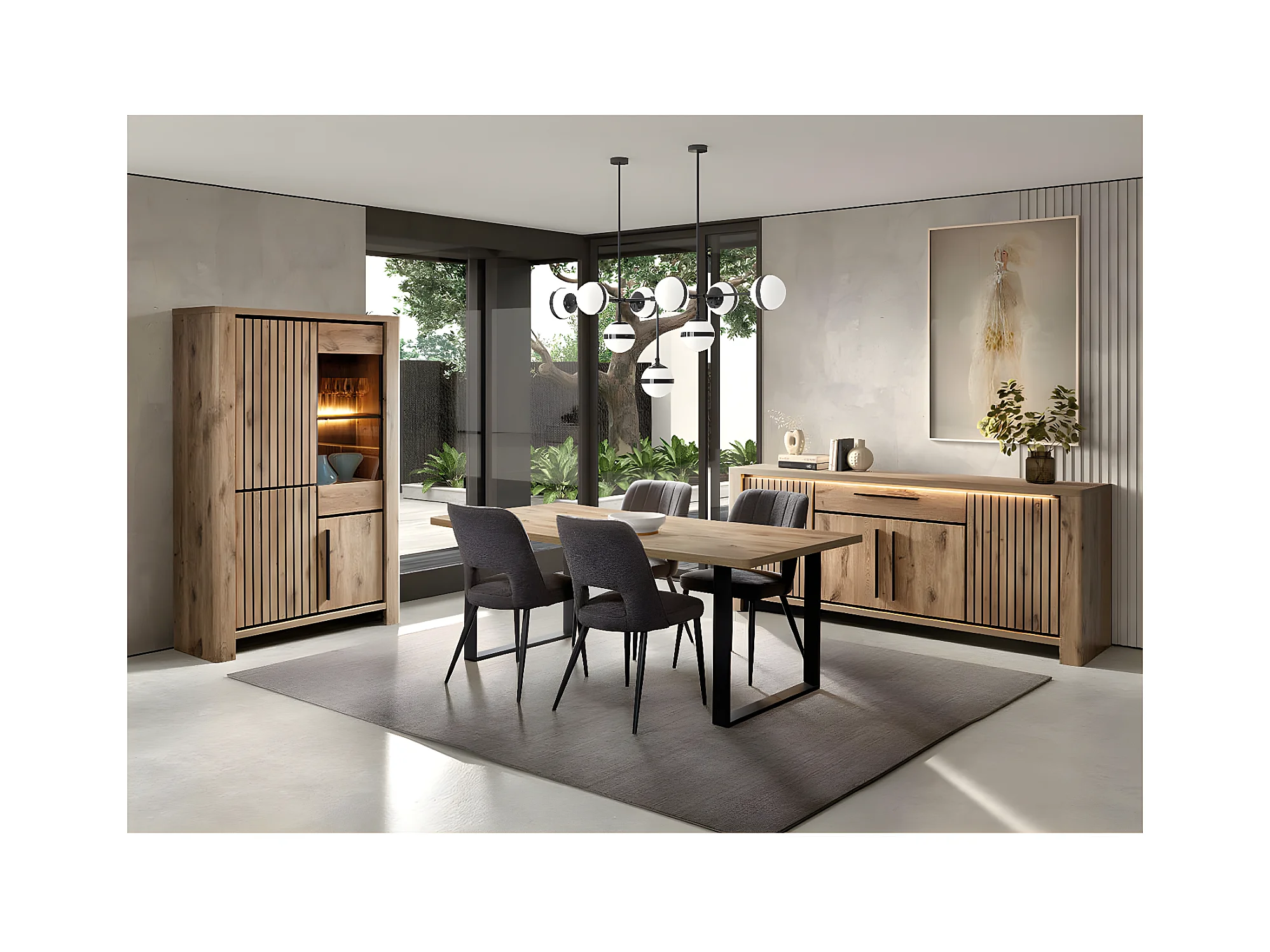 CANYON - Table Repas Coins Arrondis 200cm Aspect Bois Piètement U Métal Noir
