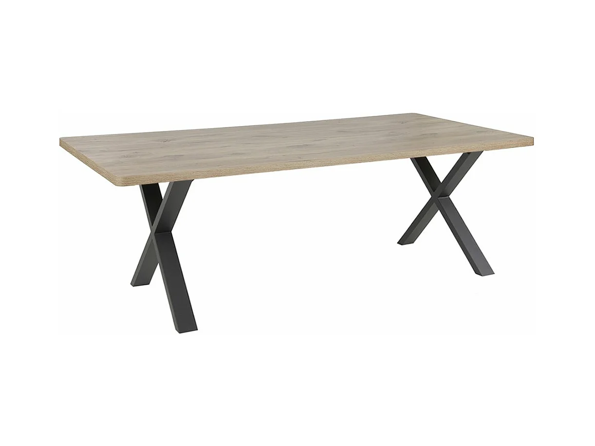 CANYON - Table Repas Coins Arrondis 200cm Aspect Bois Piètement X Métal Noir