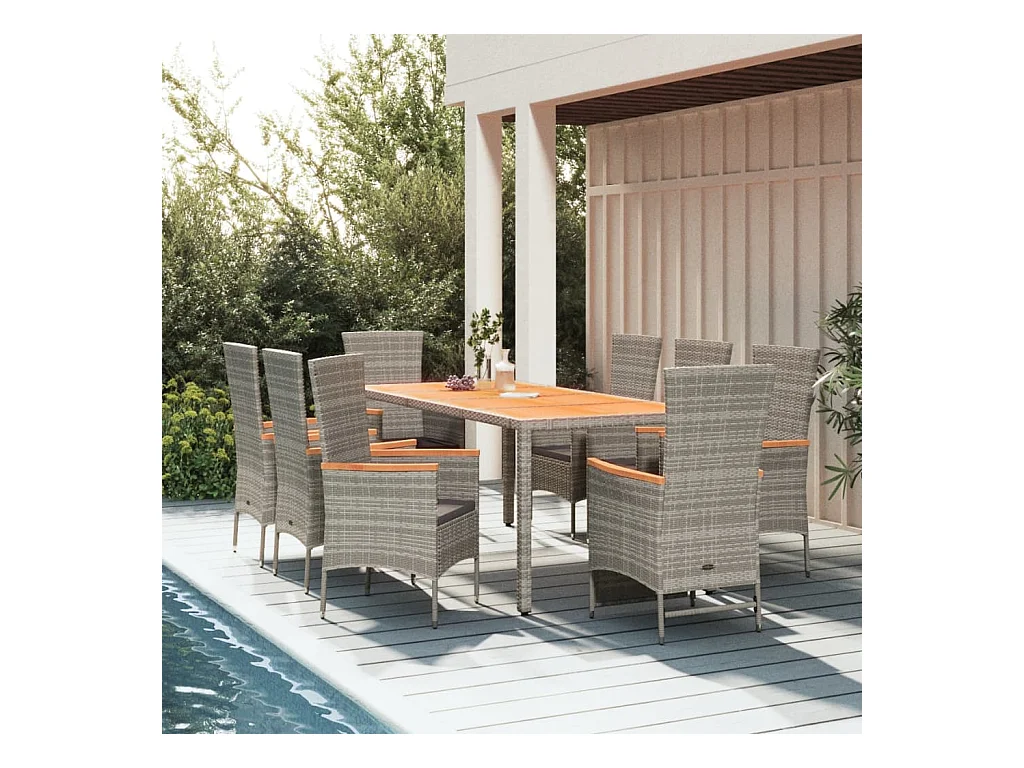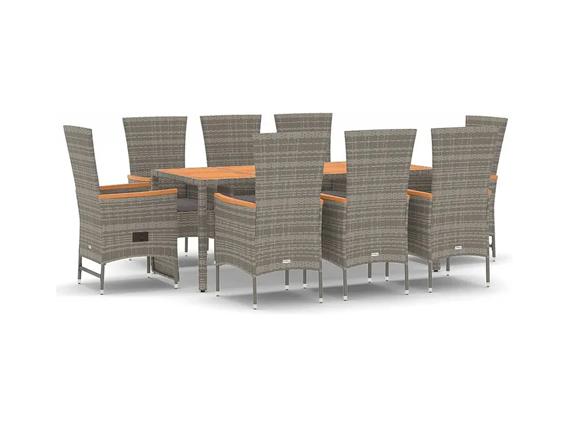 Cape May Ensemble à manger de jardin 9 pcs avec coussins Gris