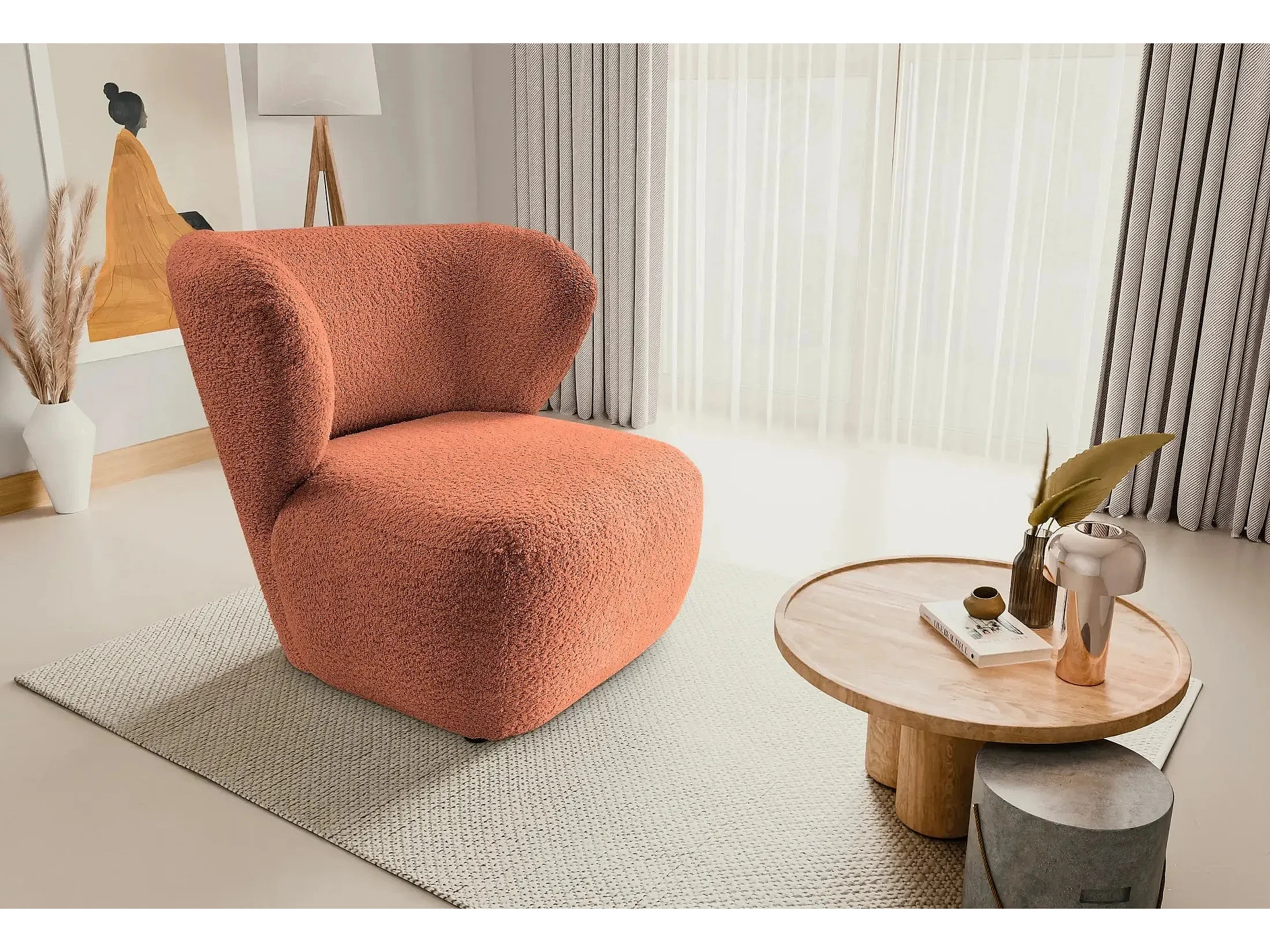 CAPRI - Fauteuil tissu bouclette - Terracotta
