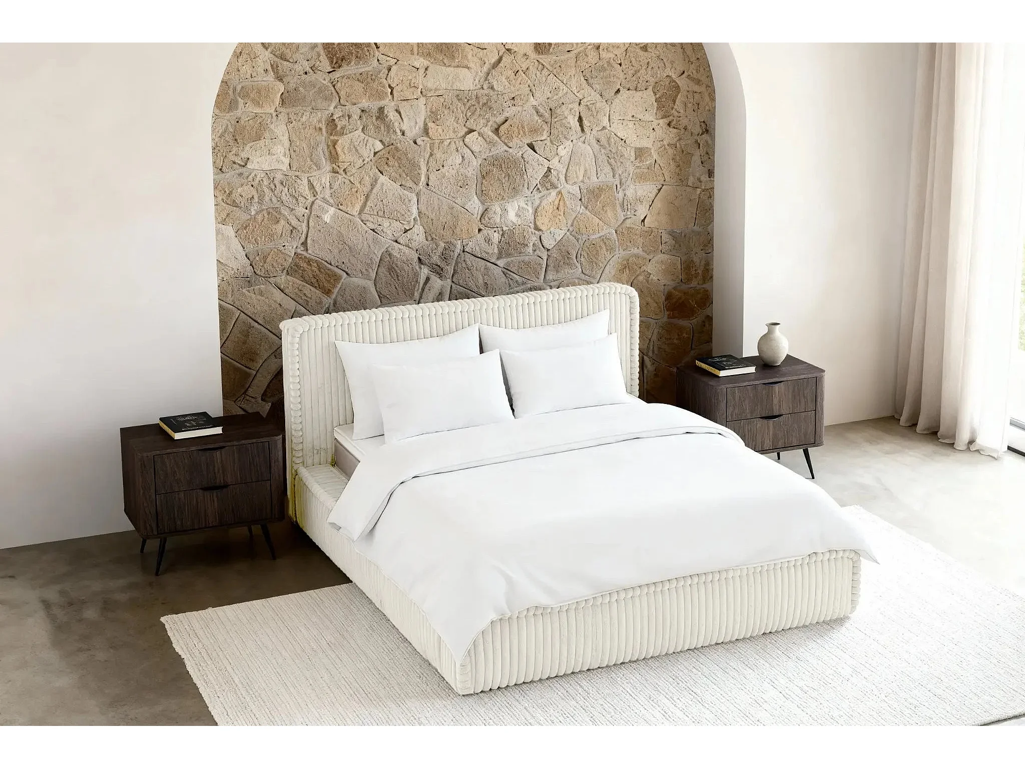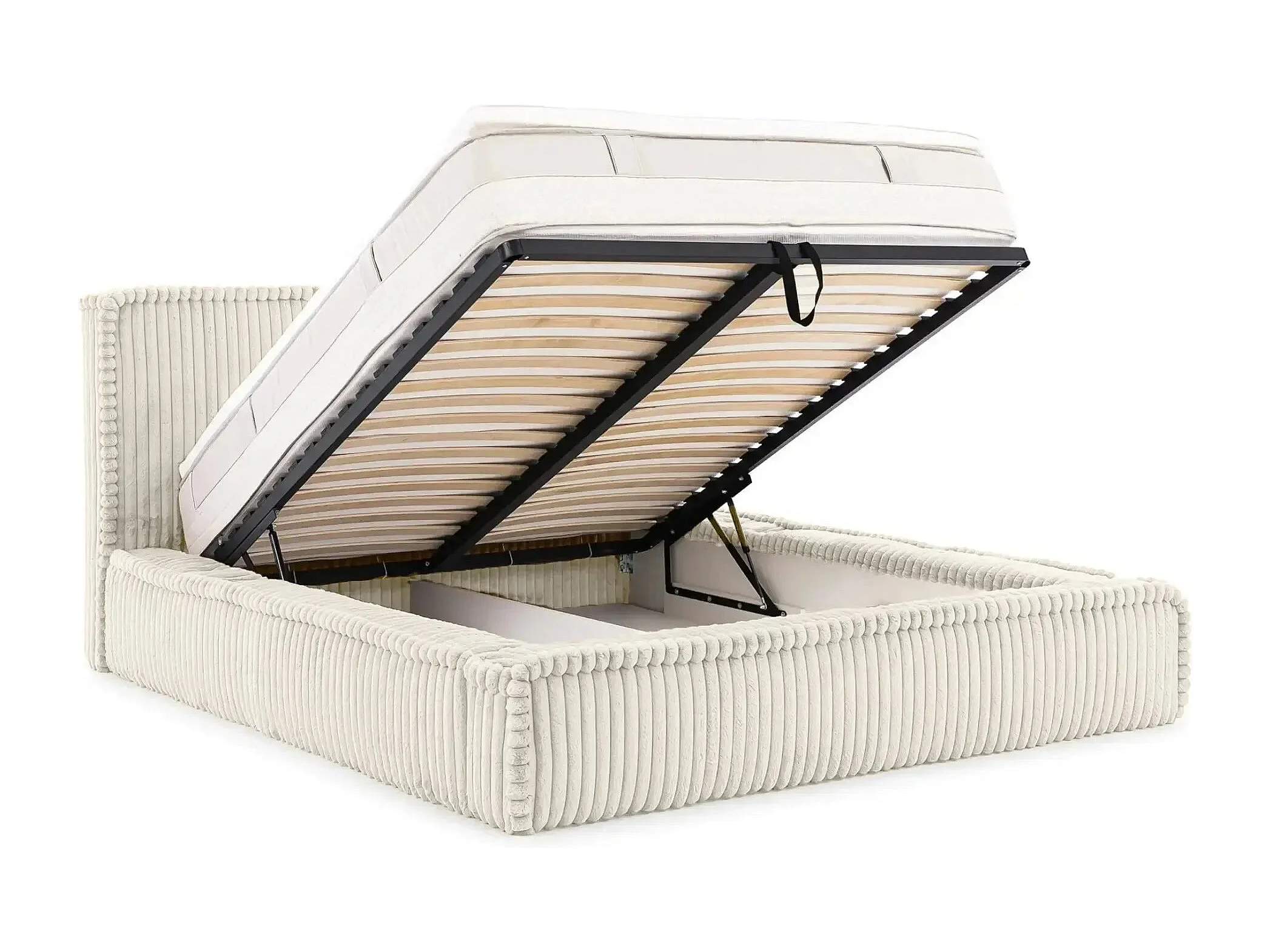 CAPUCINE - Lit coffre velours côtelé 140x200cm - Blanc