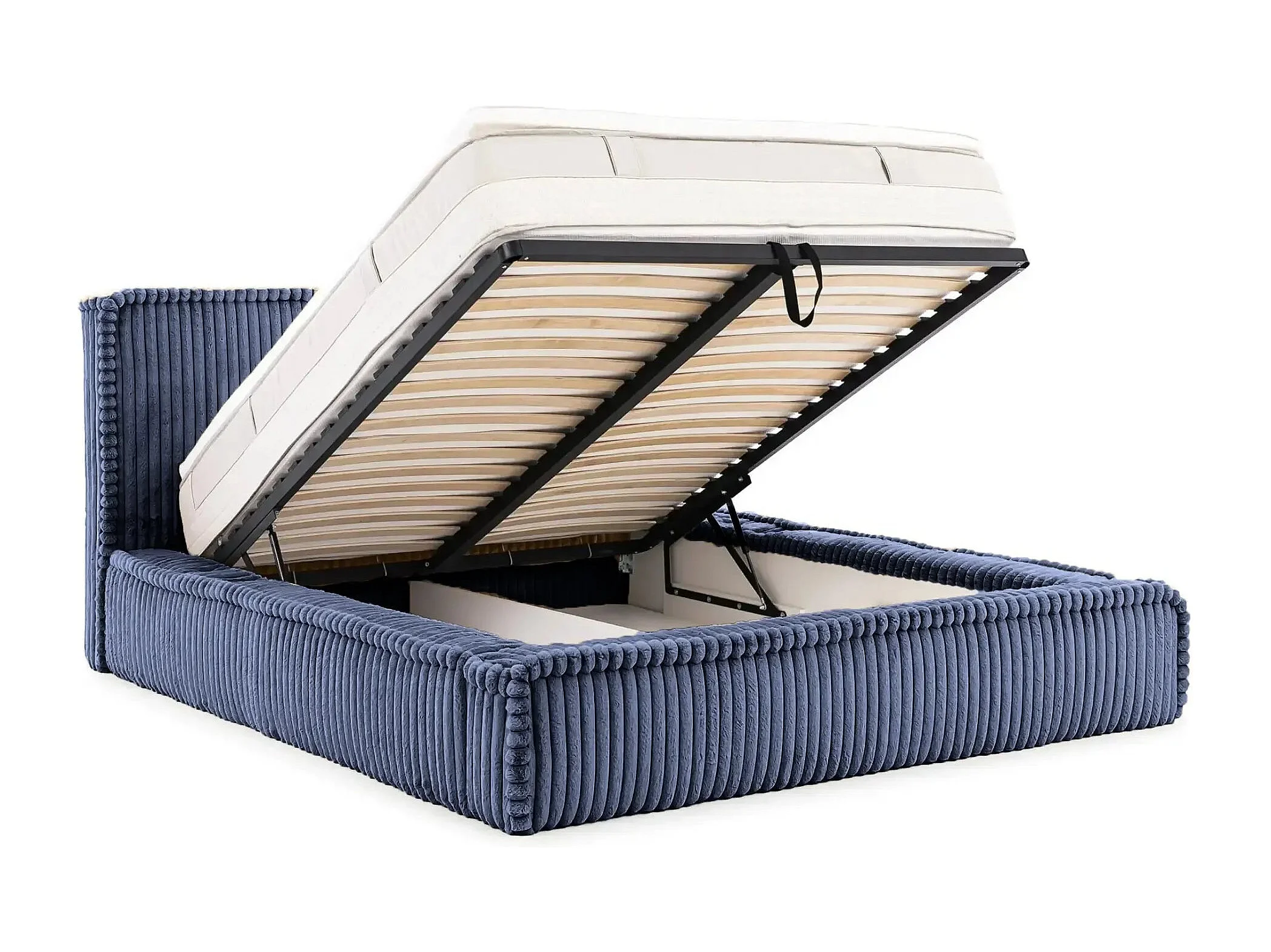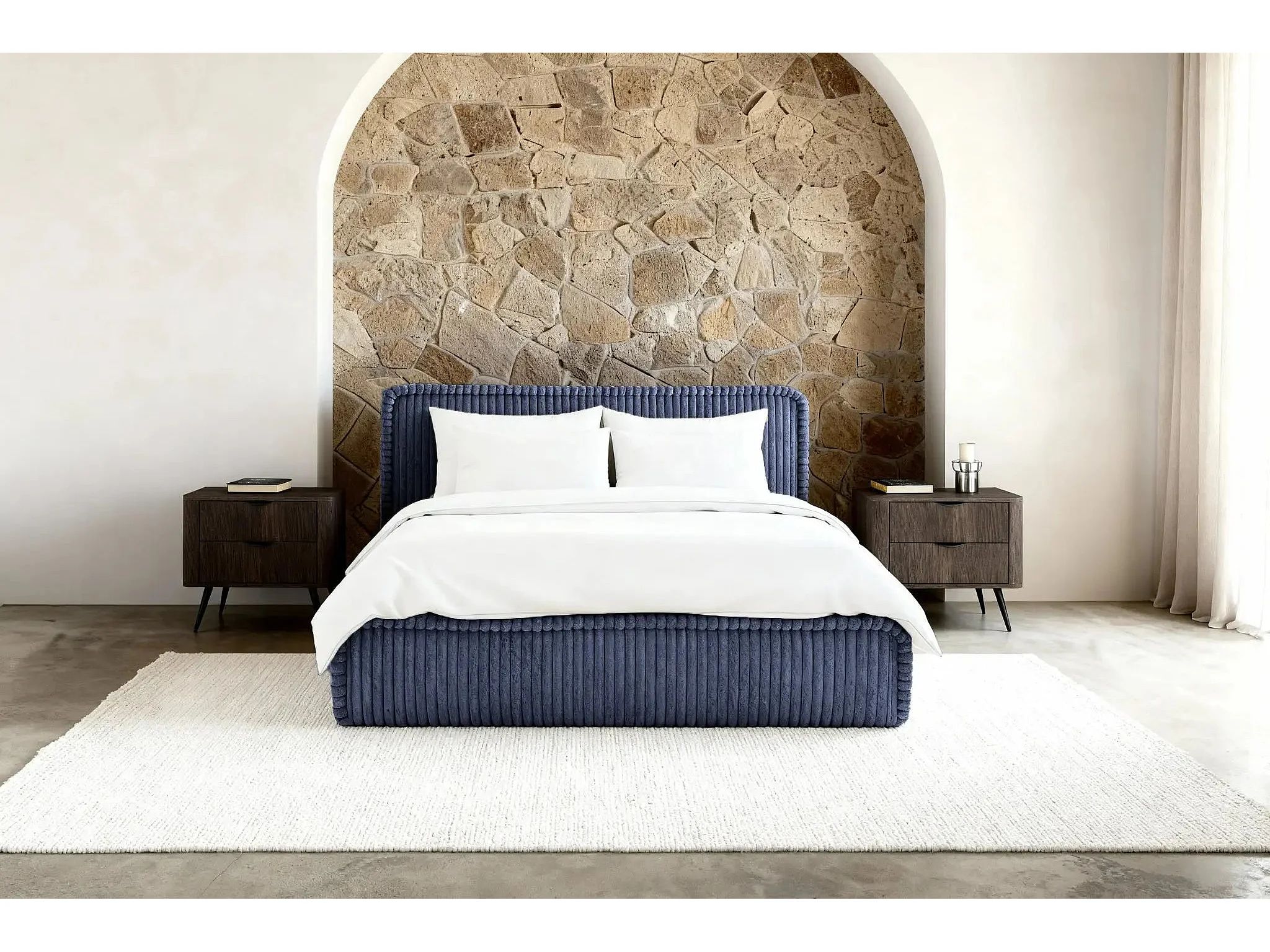 CAPUCINE - Lit coffre velours côtelé 140x200cm - Bleu