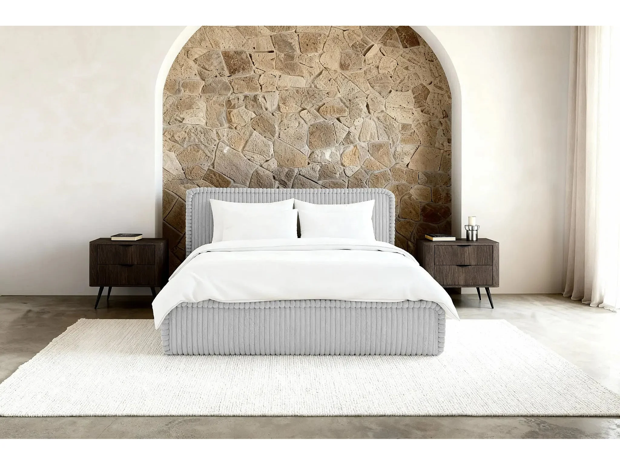 CAPUCINE - Lit coffre velours côtelé 140x200cm - Gris clair