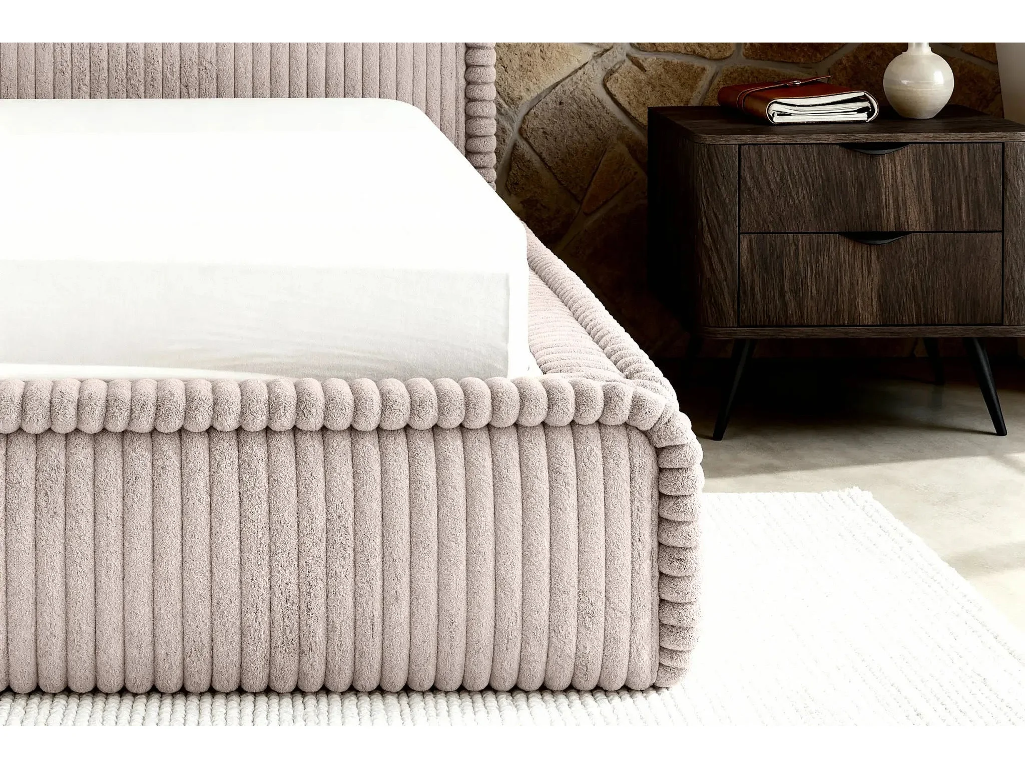 CAPUCINE - Lit coffre velours côtelé 140x200cm - Rose