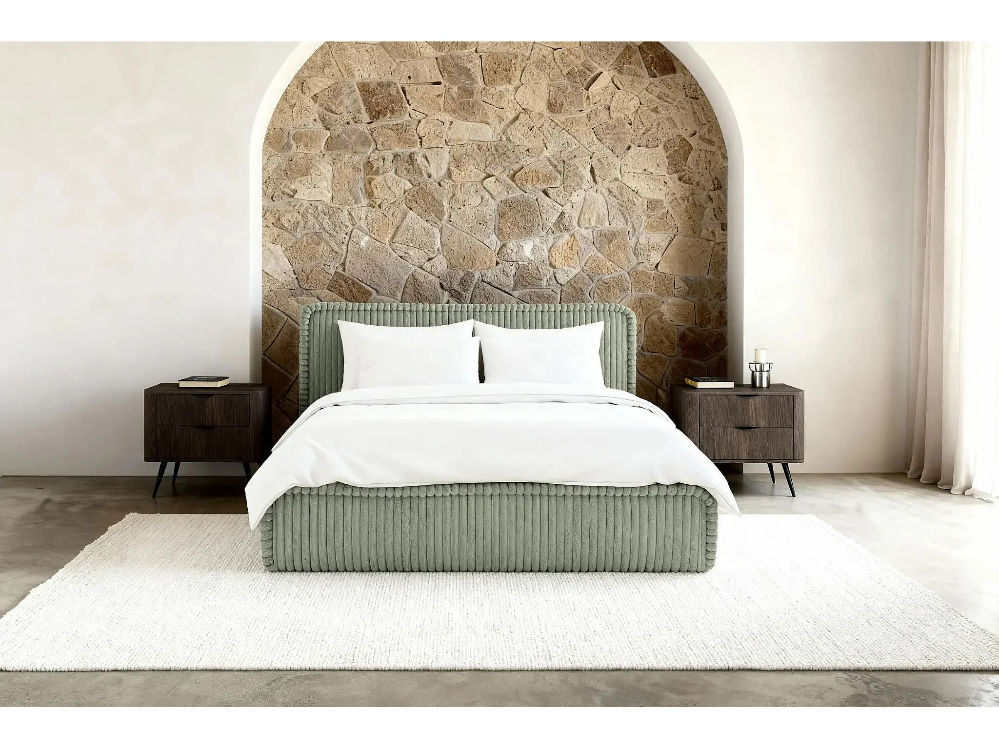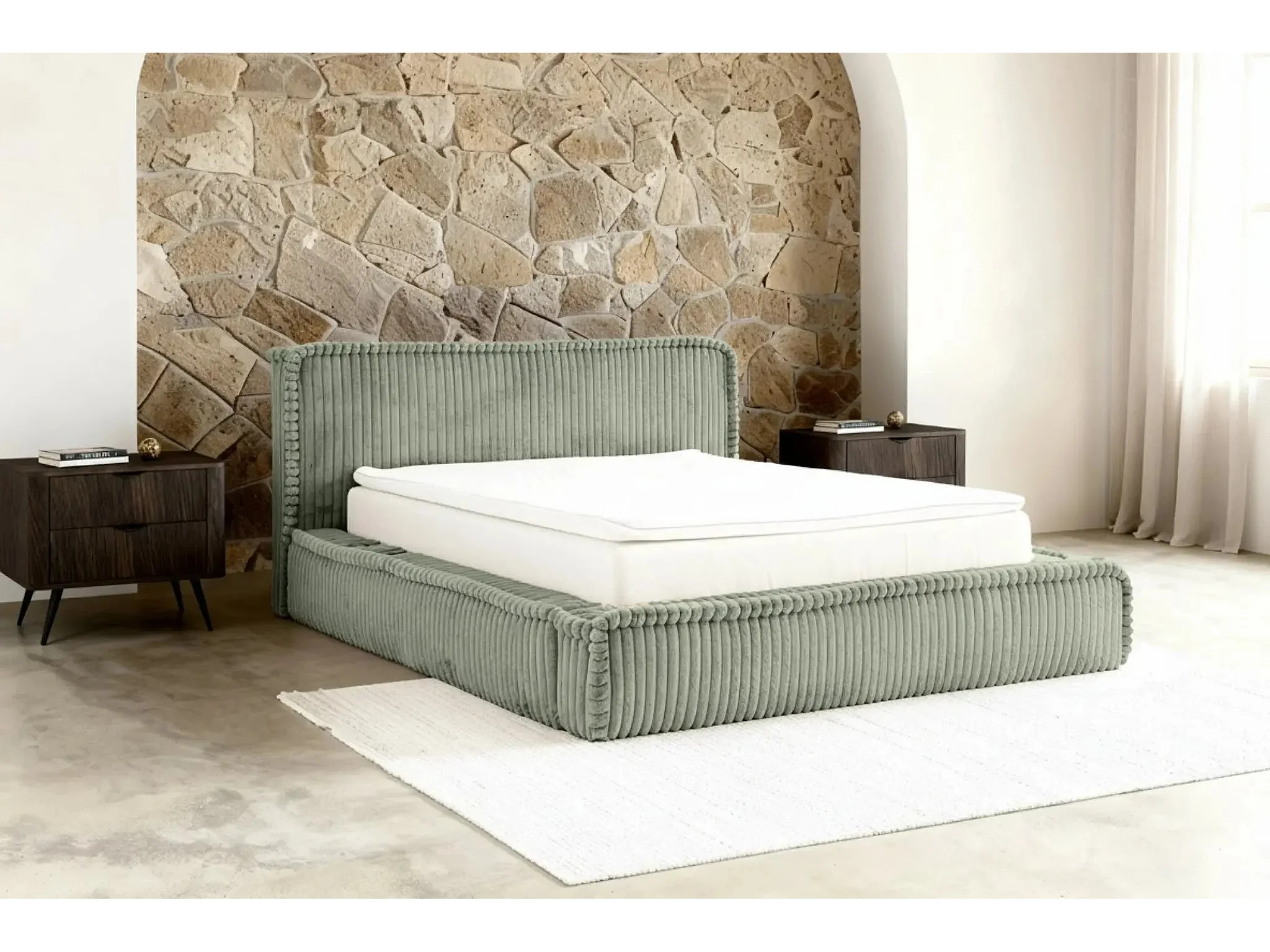 CAPUCINE - Lit coffre velours côtelé 140x200cm - Vert