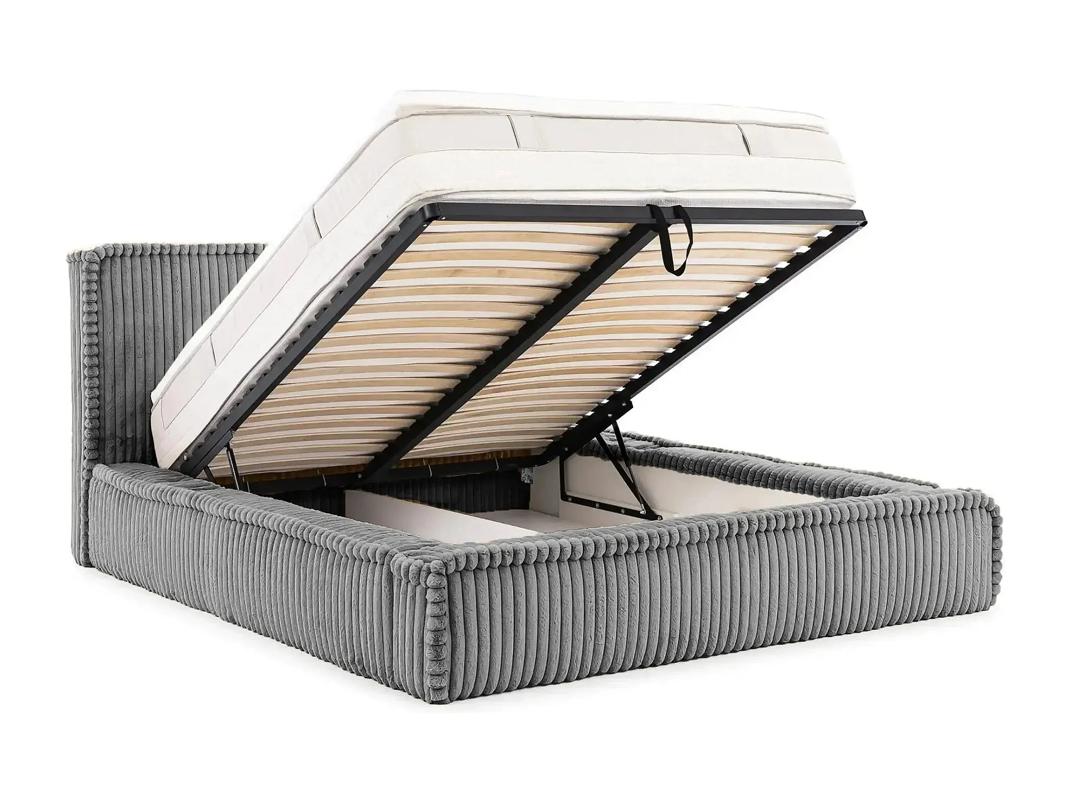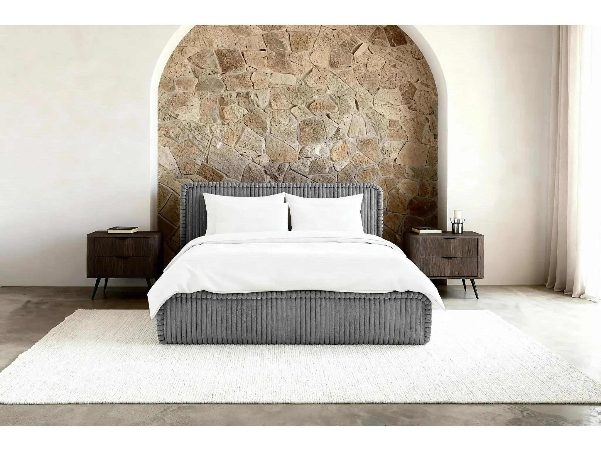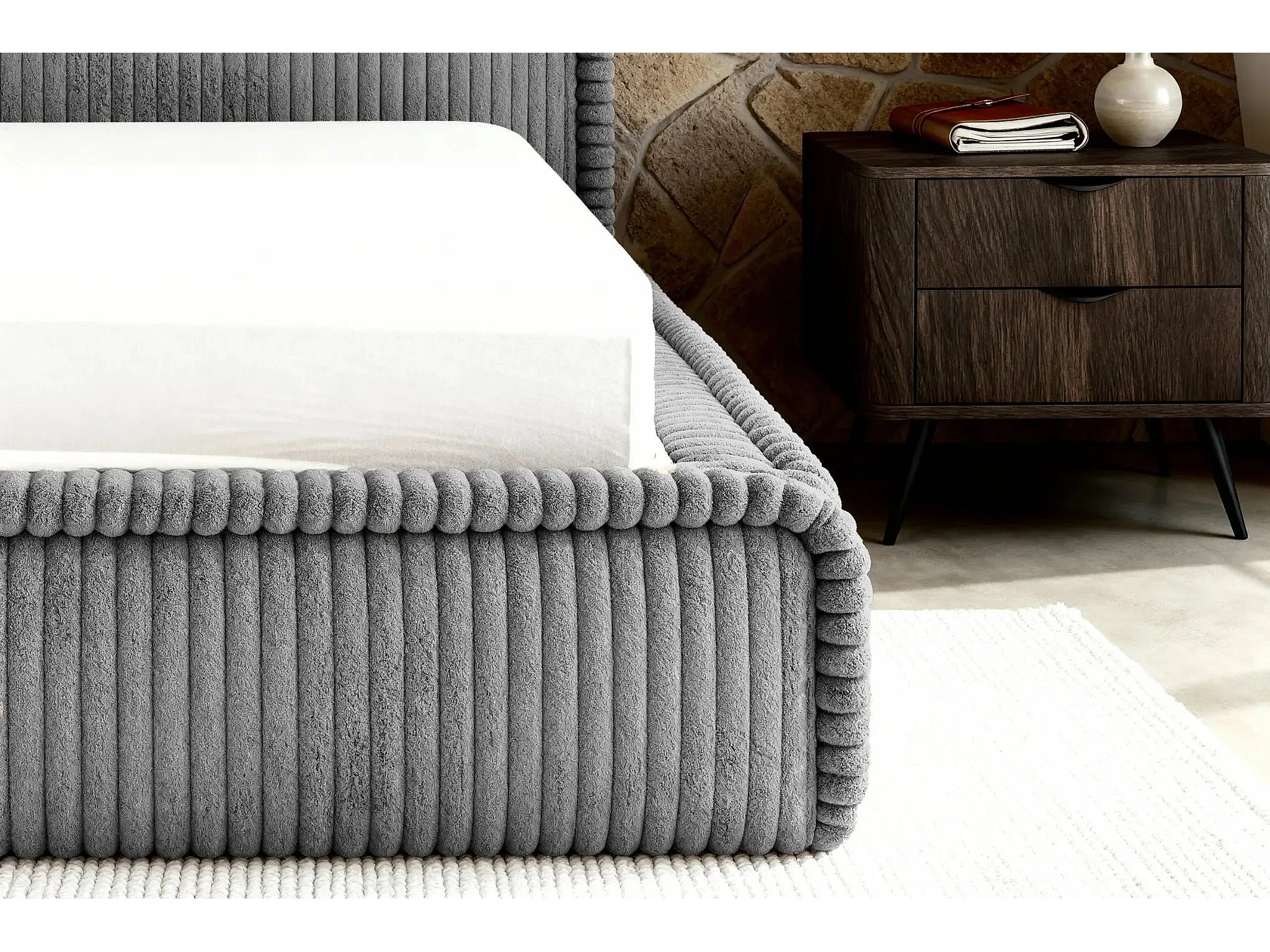 CAPUCINE - Lit coffre velours côtelé 160x200cm - Gris foncé