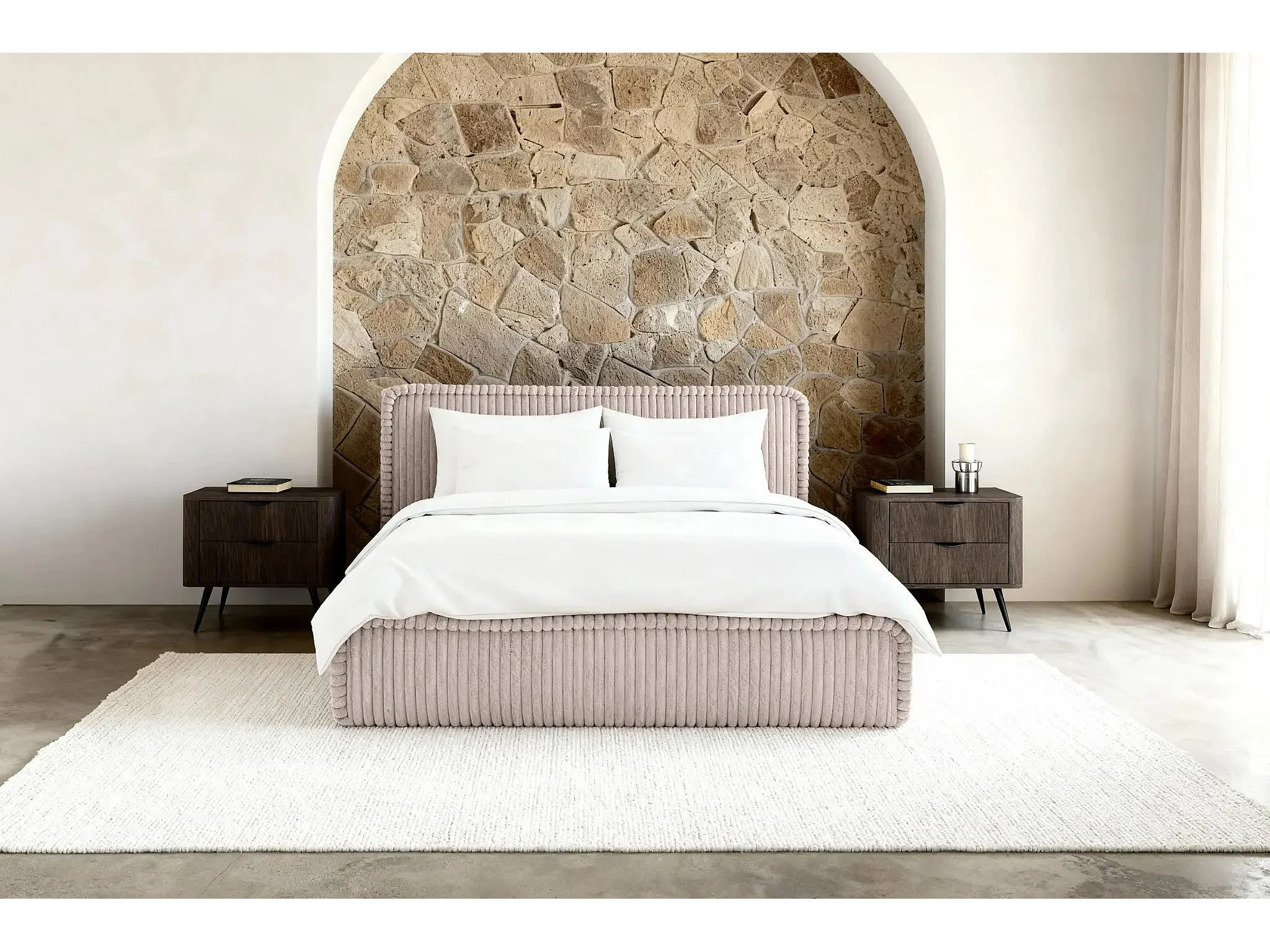CAPUCINE - Lit coffre velours côtelé 160x200cm - Rose