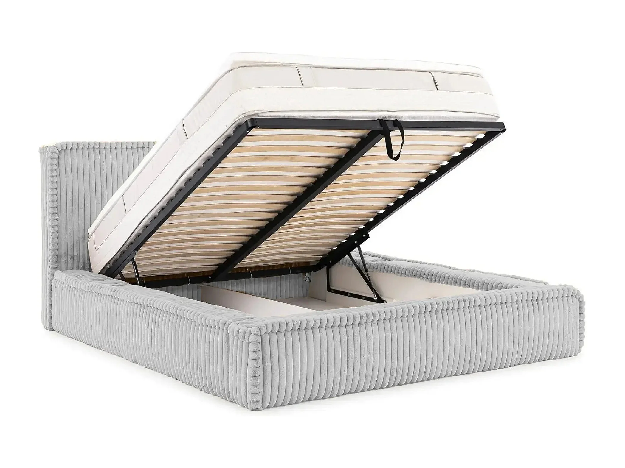 CAPUCINE - Lit coffre velours côtelé 180x200cm - Gris clair