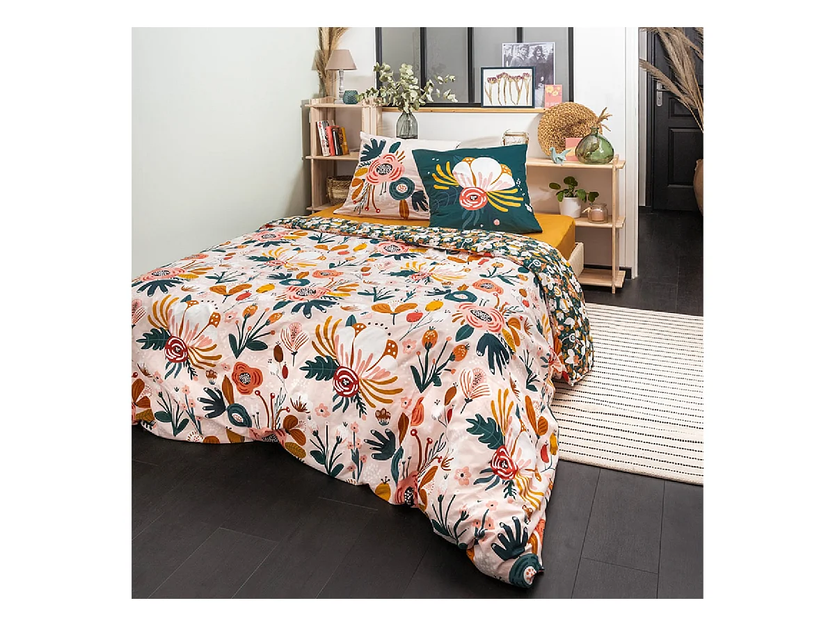 CAPUK - Parure de Lit Coton Motif Rétro Housse de Couette 240x220cm + 2 Taies d'Oreiller