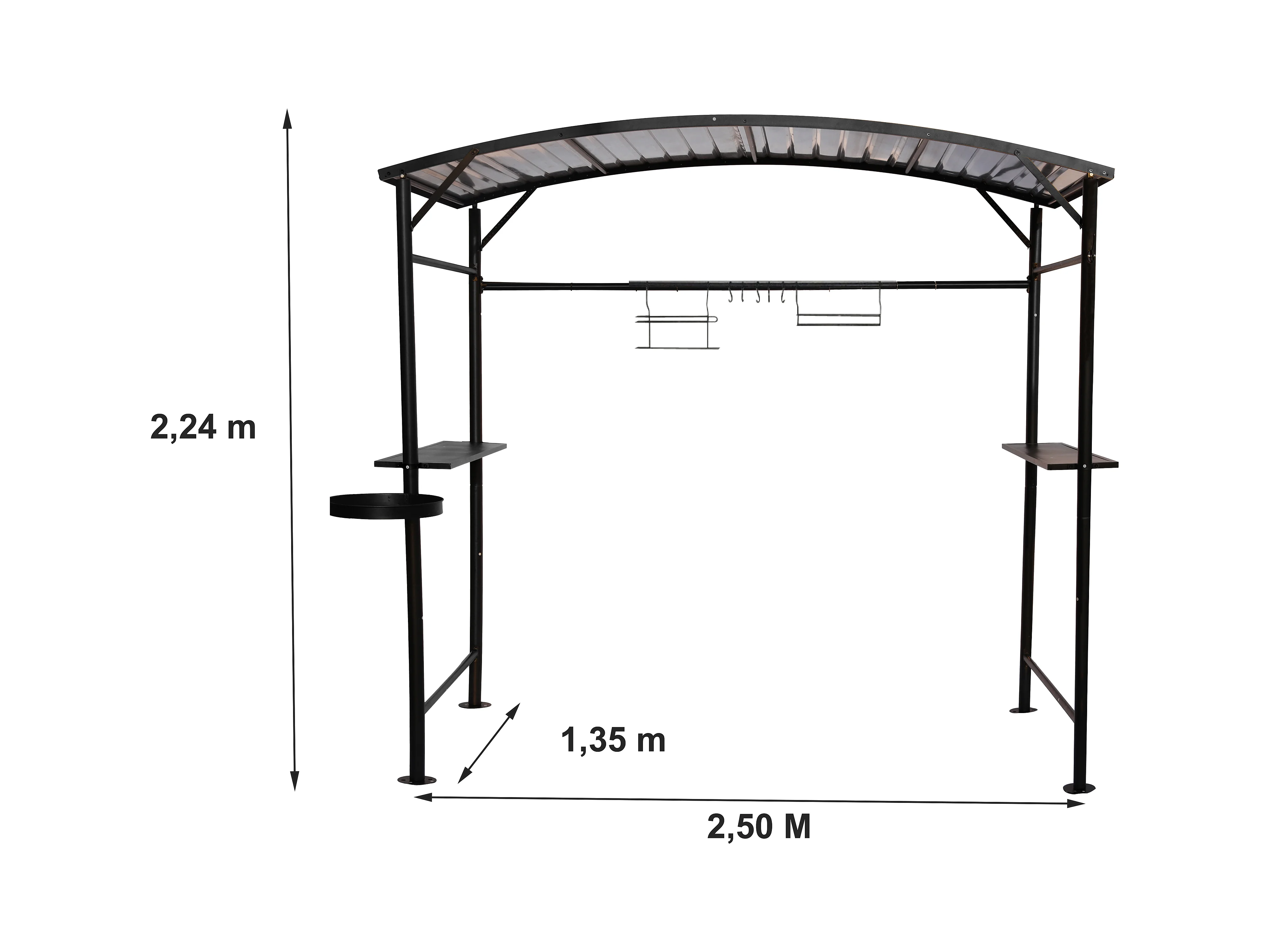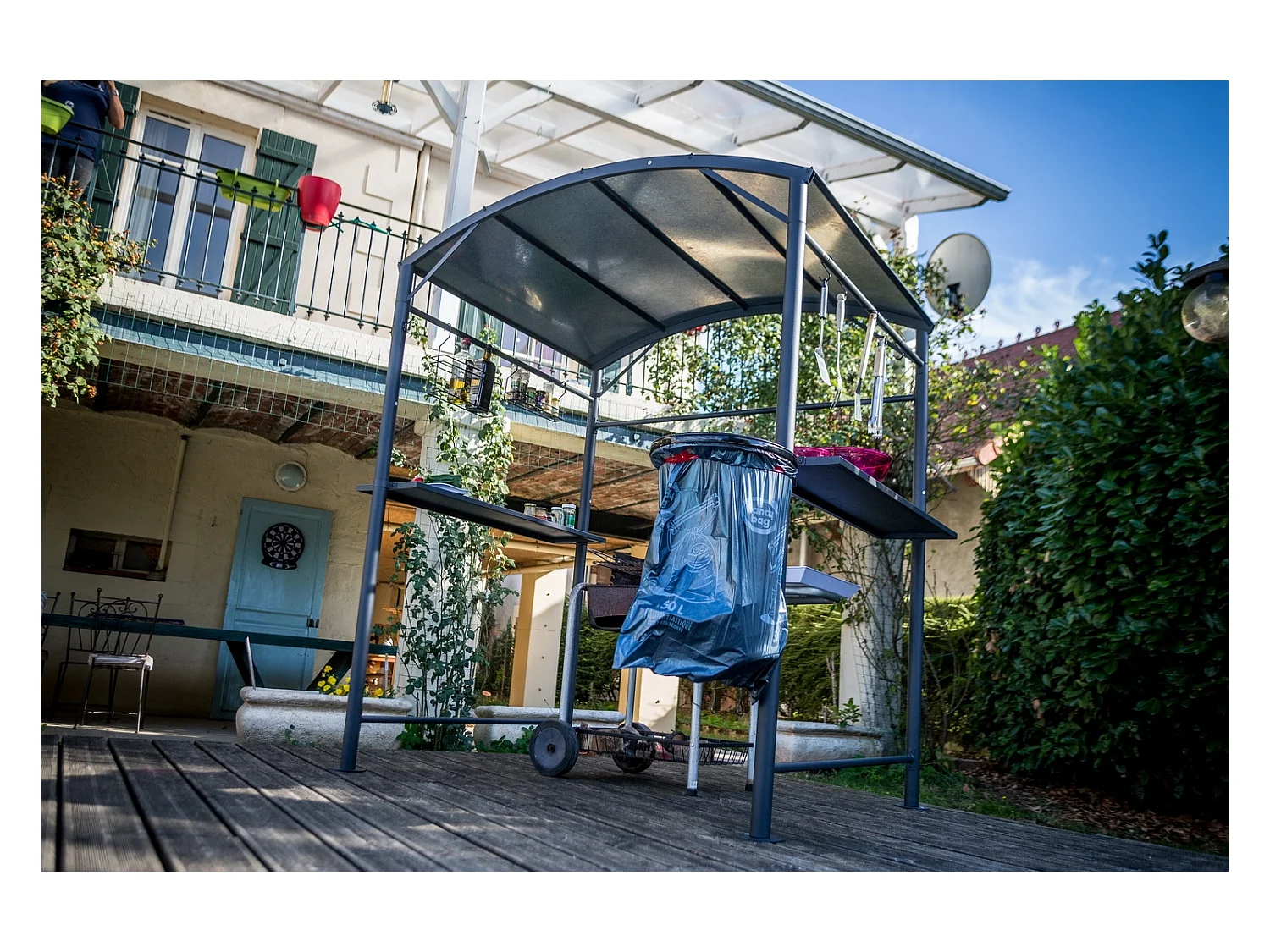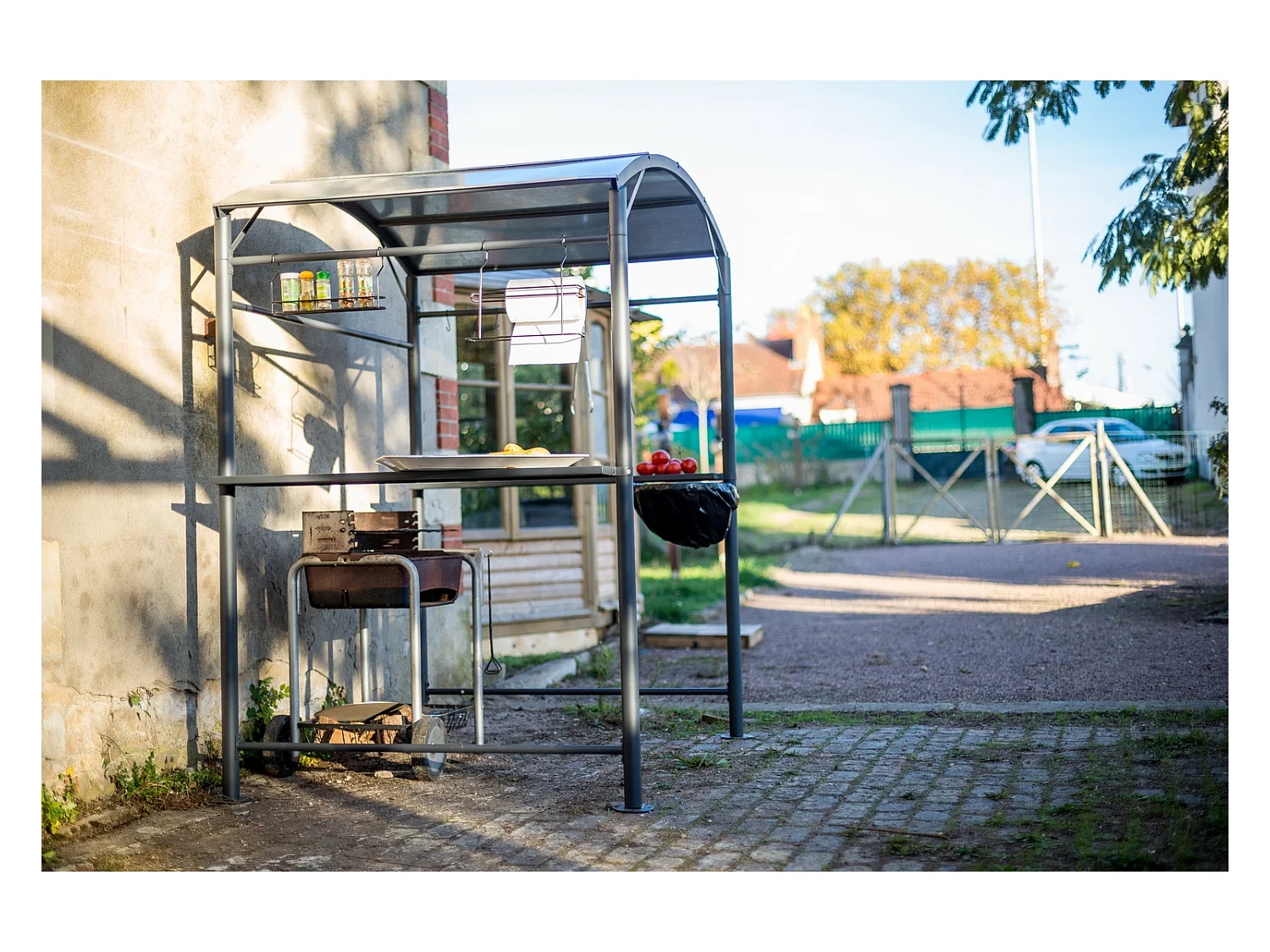 CAR1713.AC-Carport barbecue finition époxy gris anthracite / toit réalisé en acier / pieds à rattrapage de niveau et accessoires barbecue