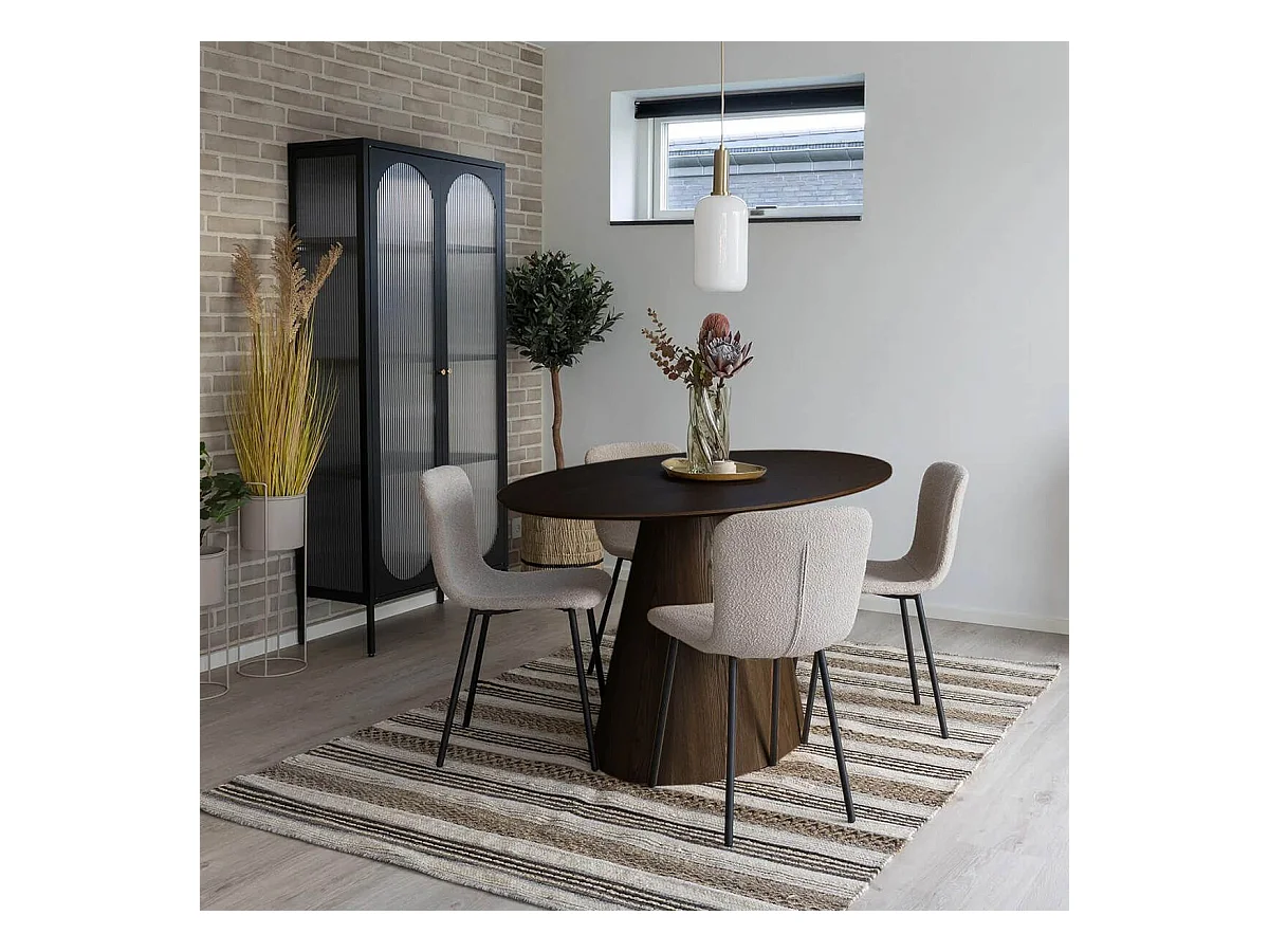 CARACAS - Table Ovale 160cm Pied Central MDF Placage Noyer