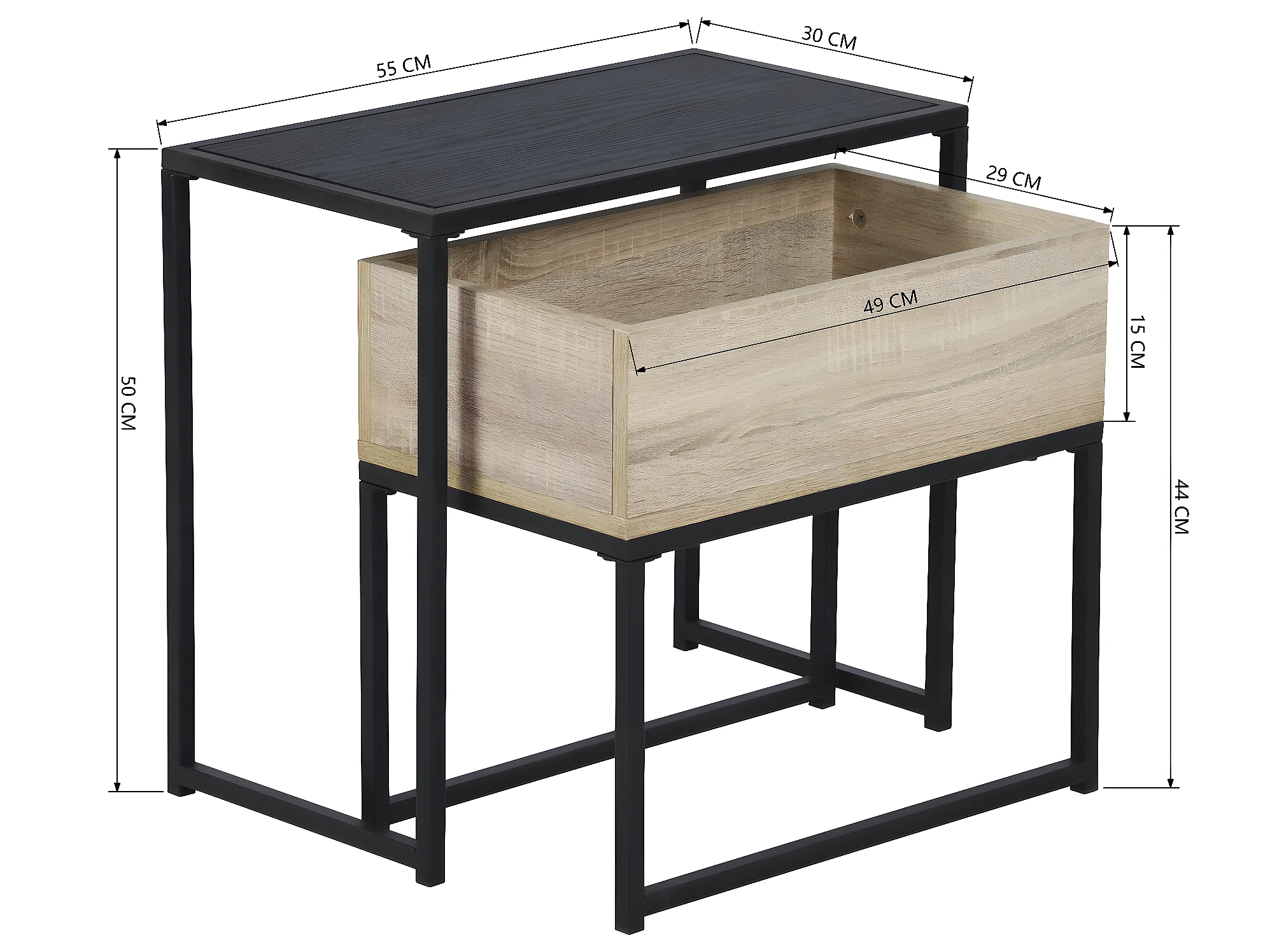 Carbonville Nid de tables 2 pièces, plateau en MDF et pieds en métal