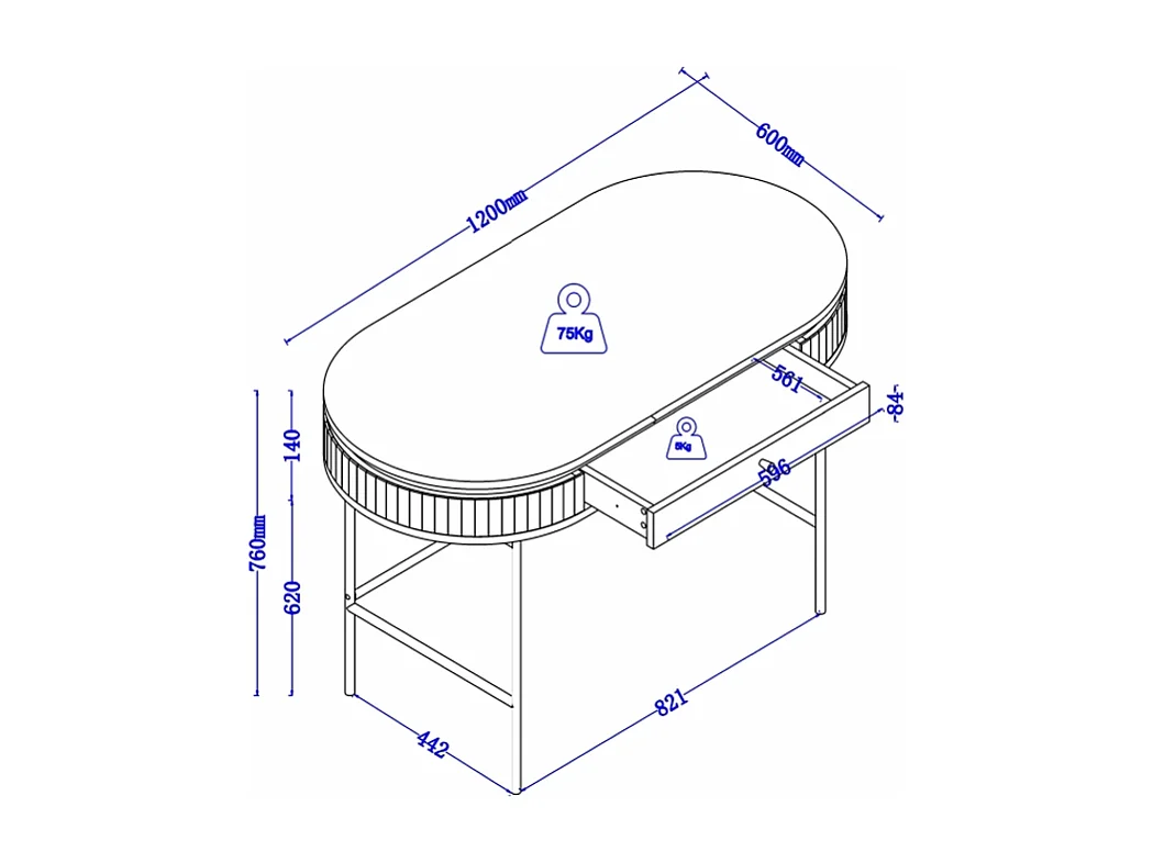 Bureau avec 1 tiroir - Placage chêne - Coloris : Naturel et noir - CARDIONA