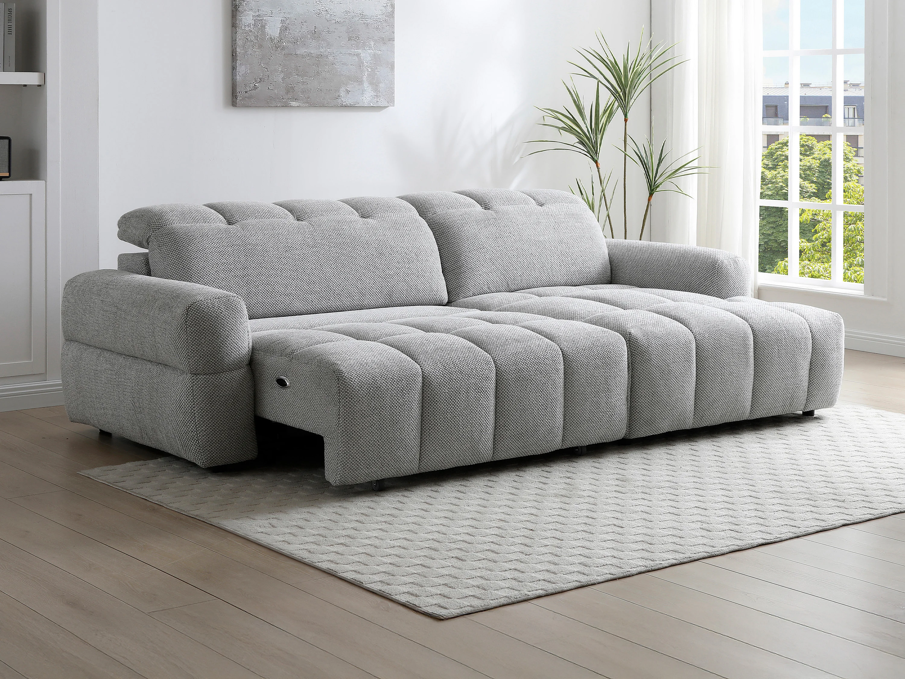 Canapé d'angle droit relax avec assise coulissante électrique en tissu gris CARIALA