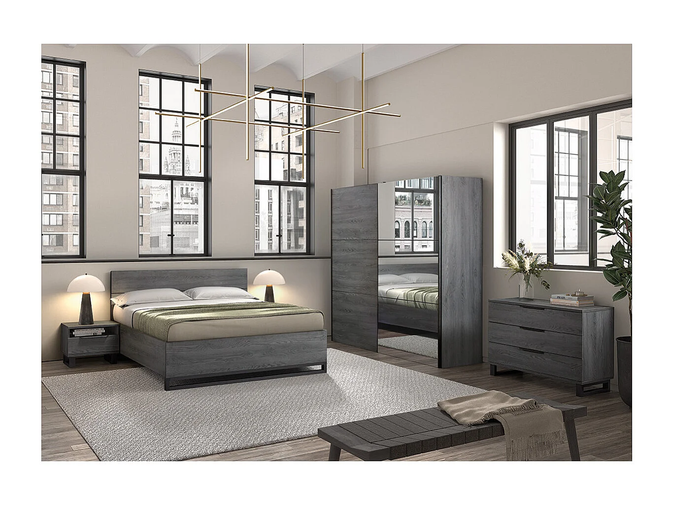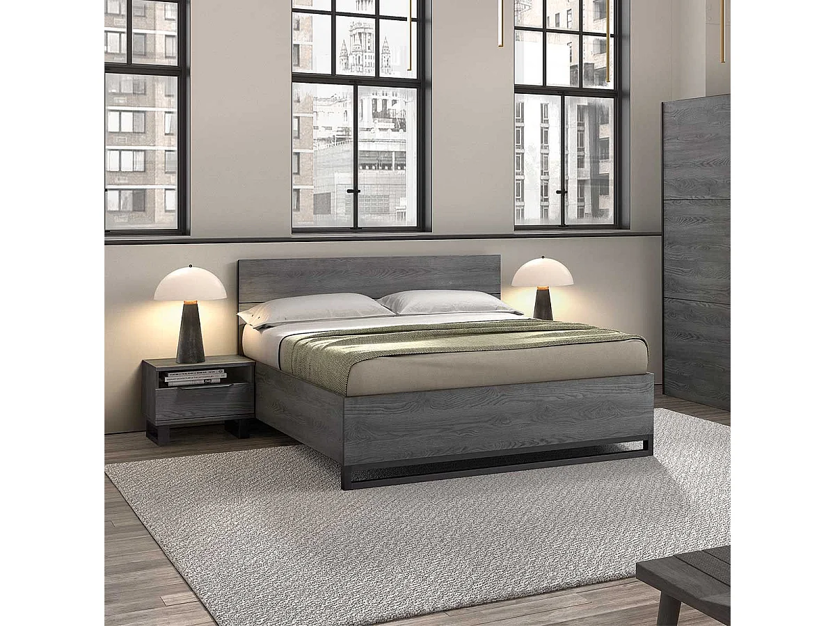 CARLIN - Lit 160x200 Aspect Bois Gris et Piètement Avant en Métal Noir
