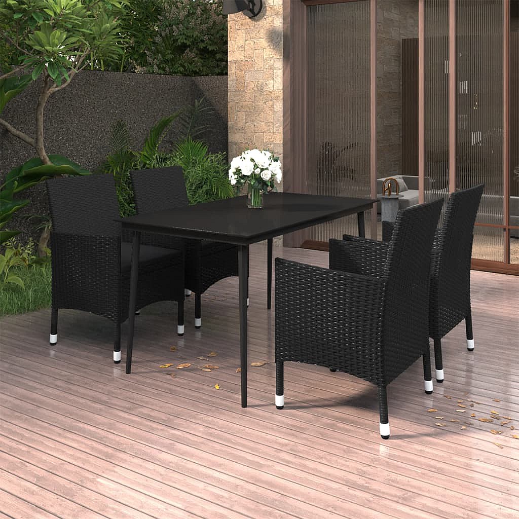 Carlinville Ensemble à manger de jardin coussins 5 pcs Résine tressée Verre