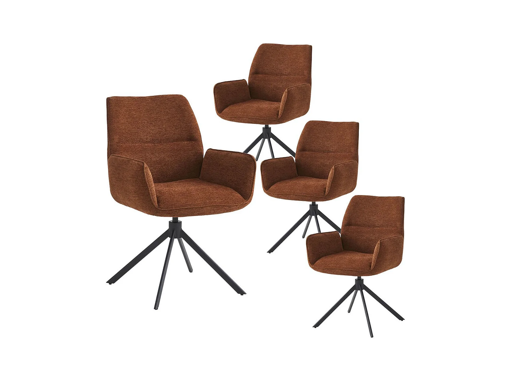 CARLOTTA - Lot de 4 Fauteuils de table Pivotants Tissu Coloris Terracotta