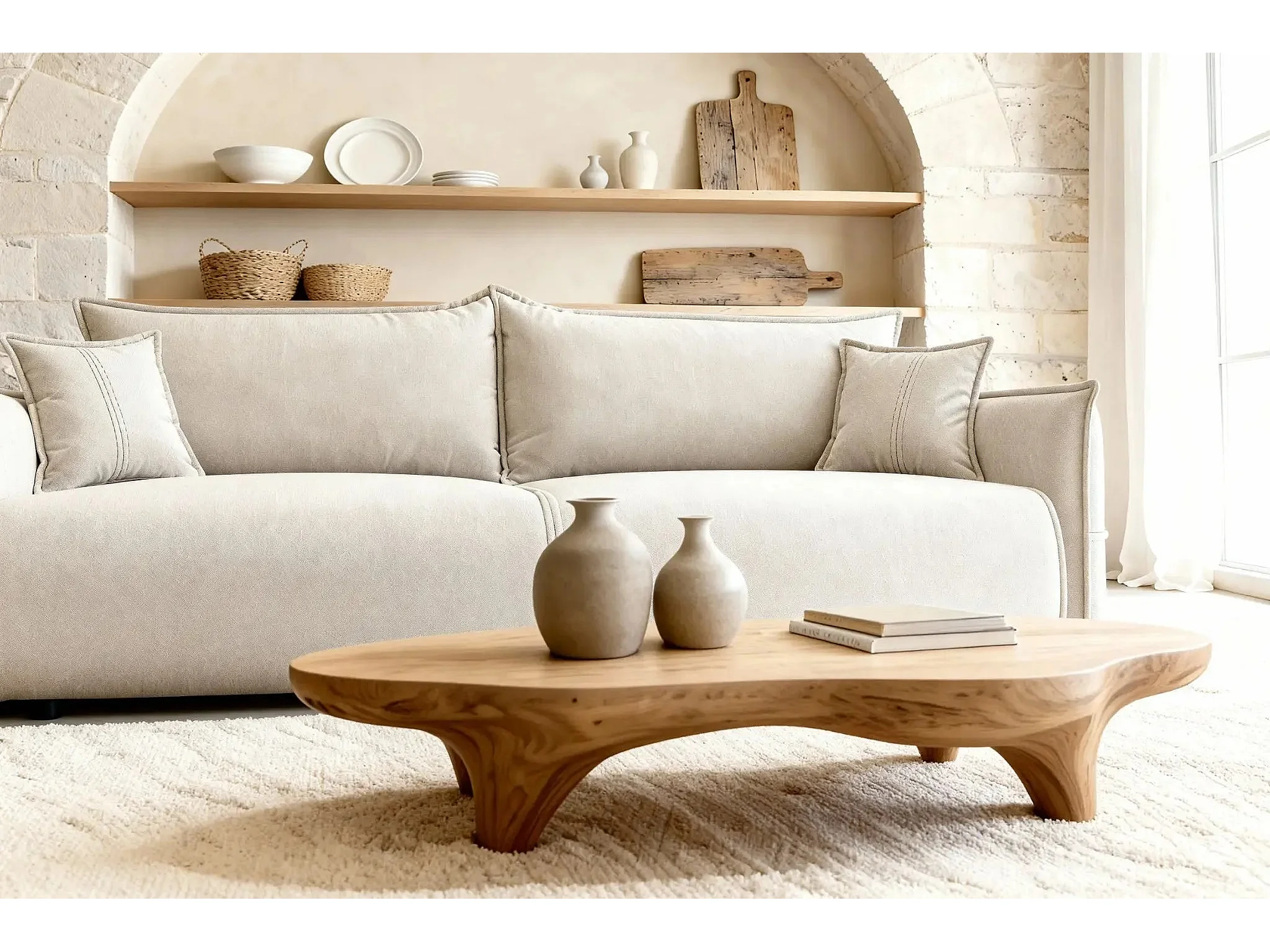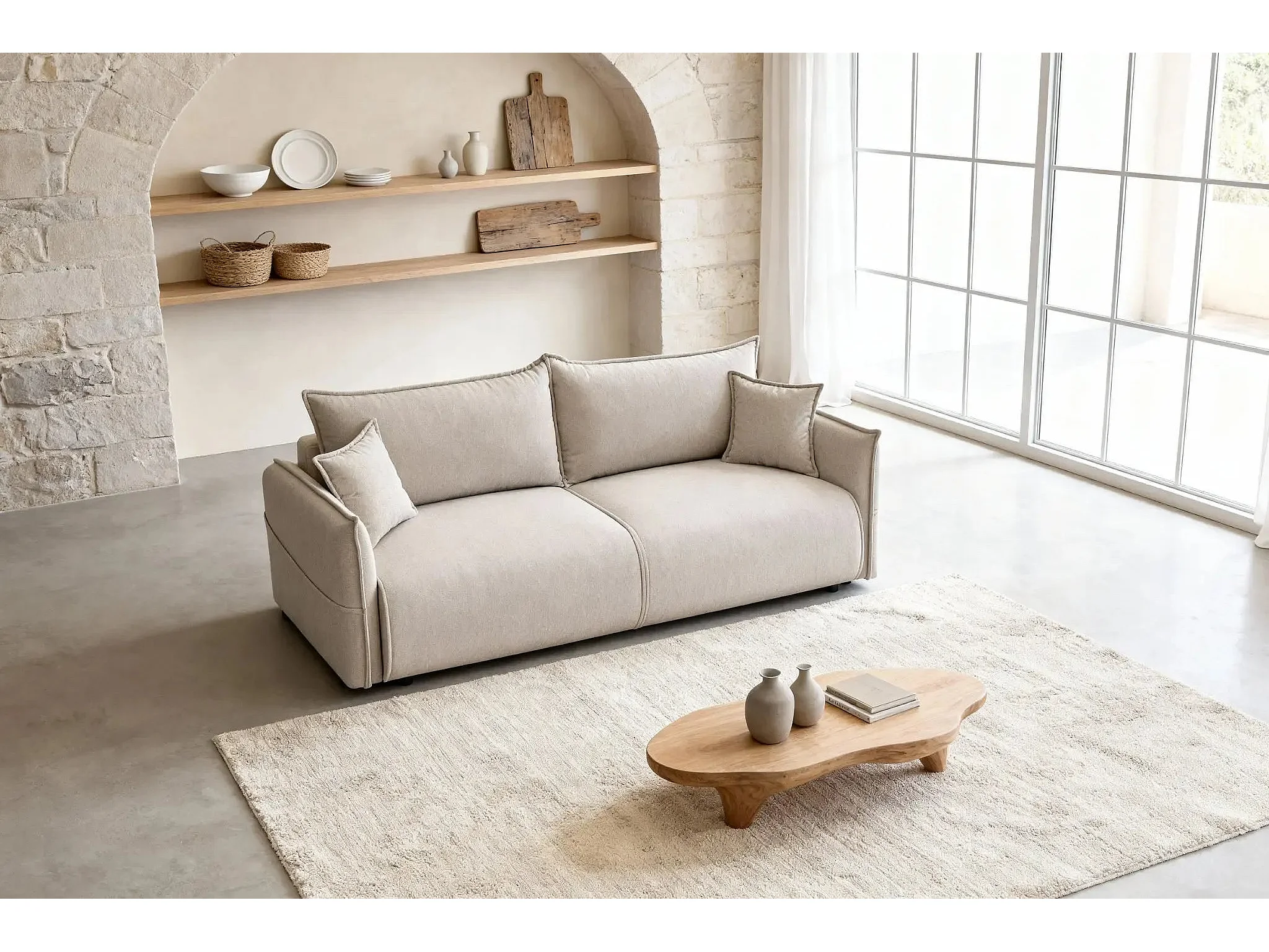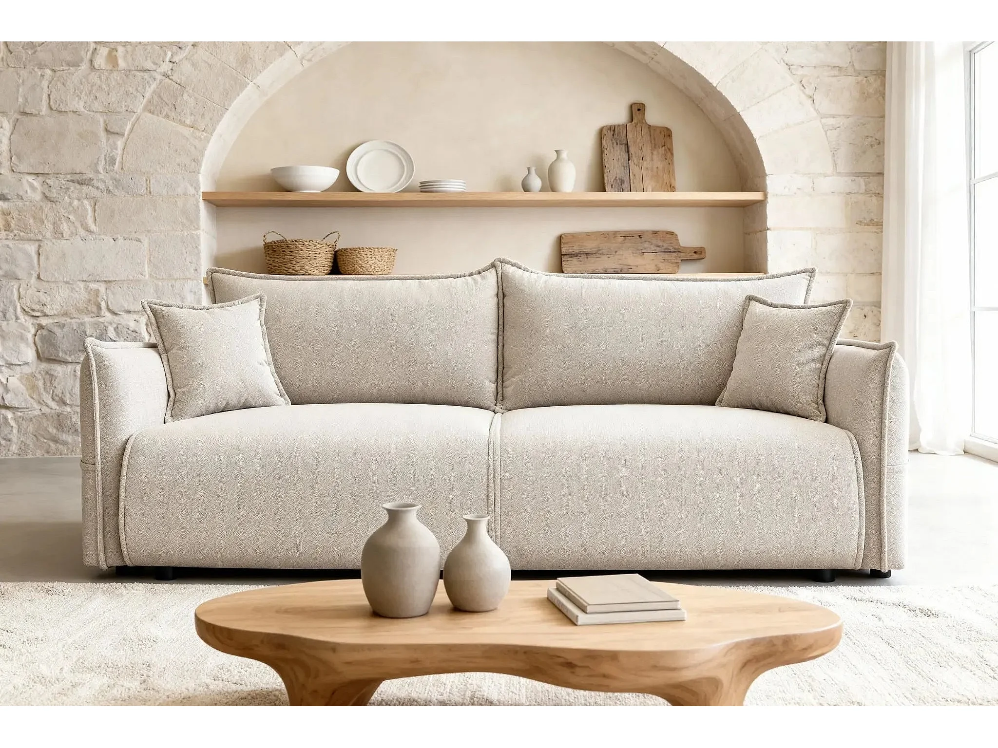 CAROLINA - Canapé droit convertible tissu chiné 3 places - Beige