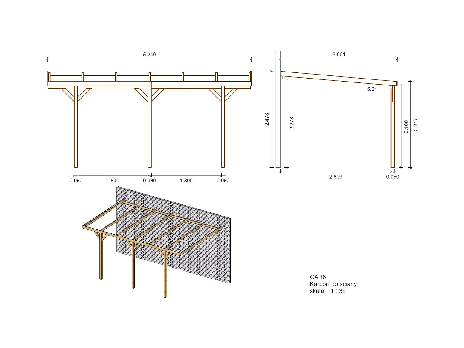 Carport, abri de voiture 3x5.24 m - 15 m2 - adossé  - CAR6 - ALTANKA