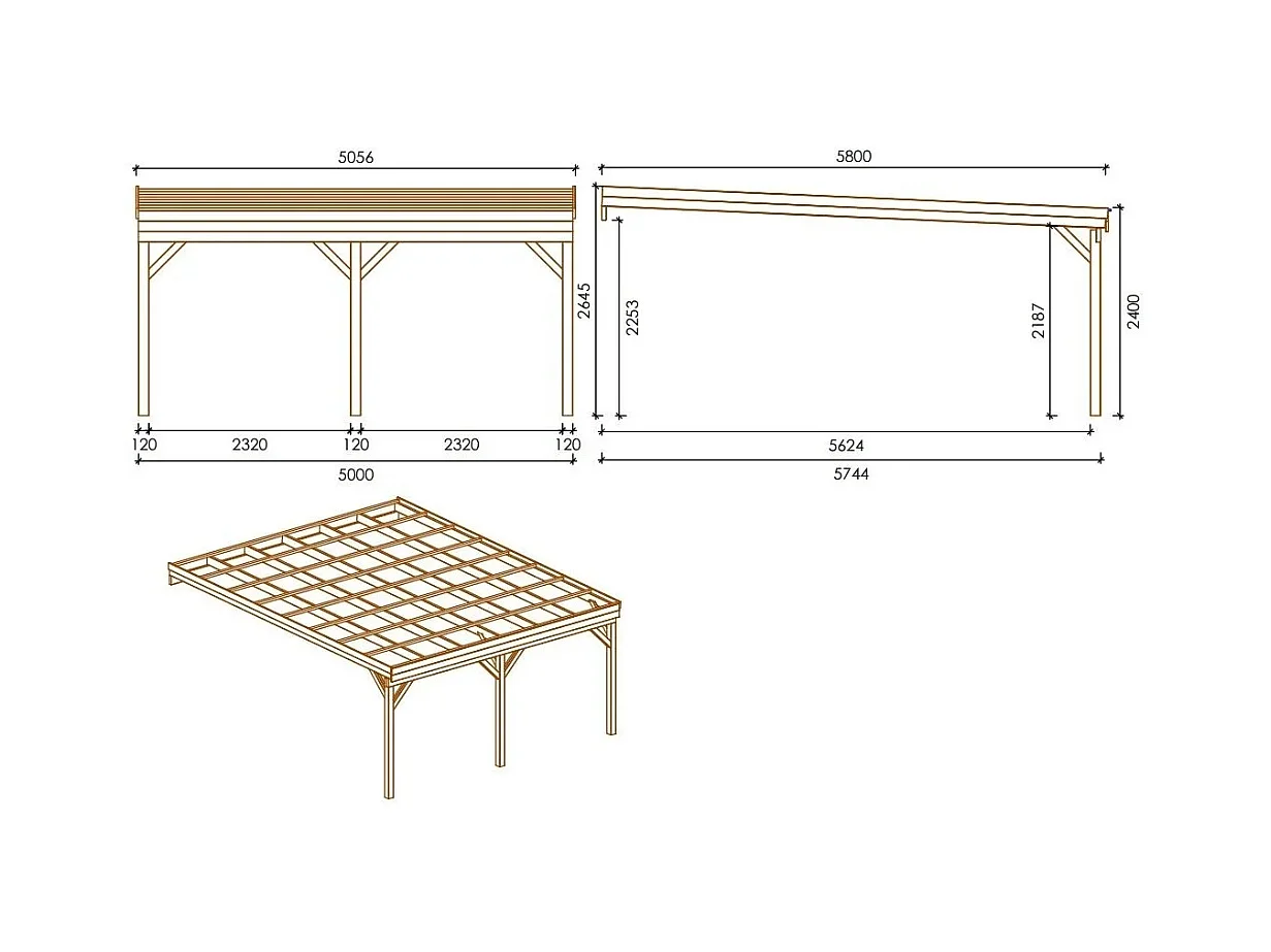 Carport, abri de voiture 5.8x5.06 m - 29 m2 - adossé  - CAR23 - ALTANKA