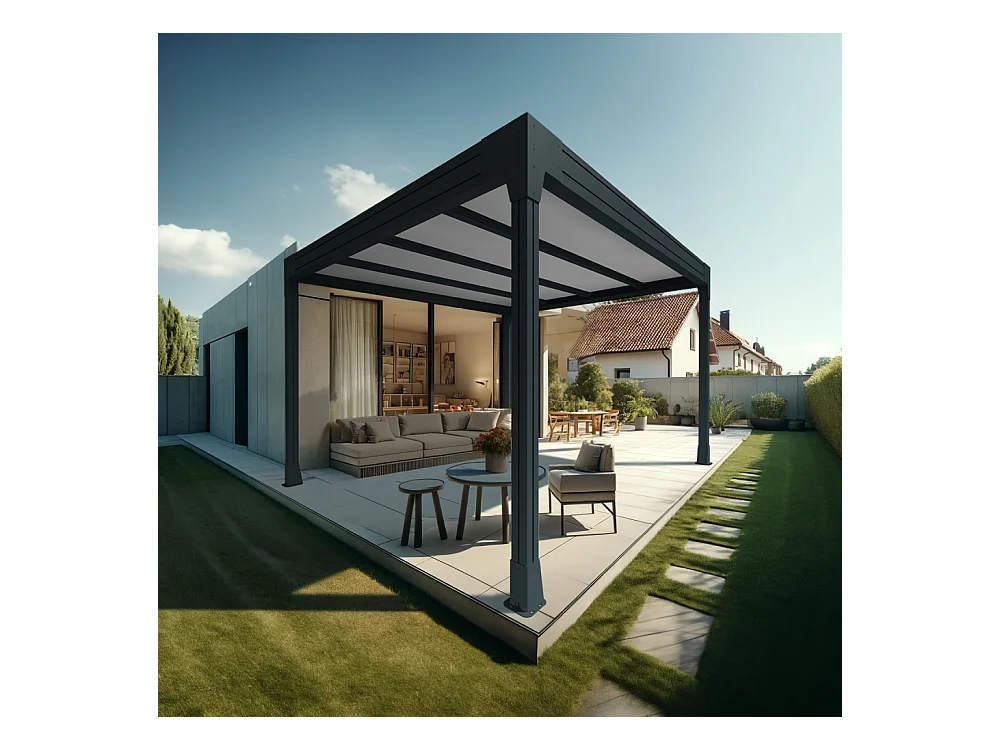 Pergola Bioclimatique gris anthracite – Triomphe – 300x400cm. aluminium. à lames orientables + store 400cm