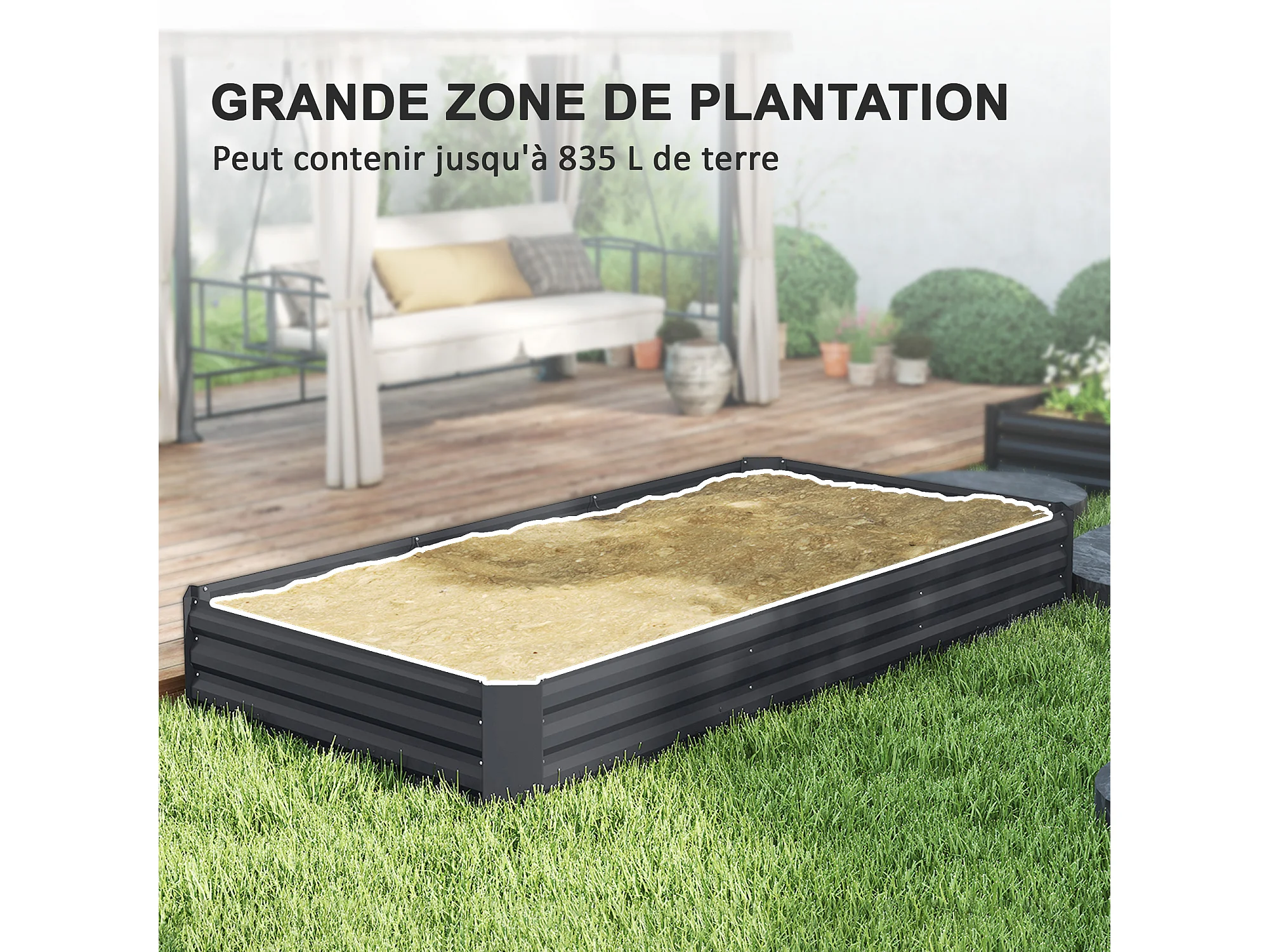 Carré potager de jardin dim. 240L x 120l x 30H cm tôle d'acier ondulée gris