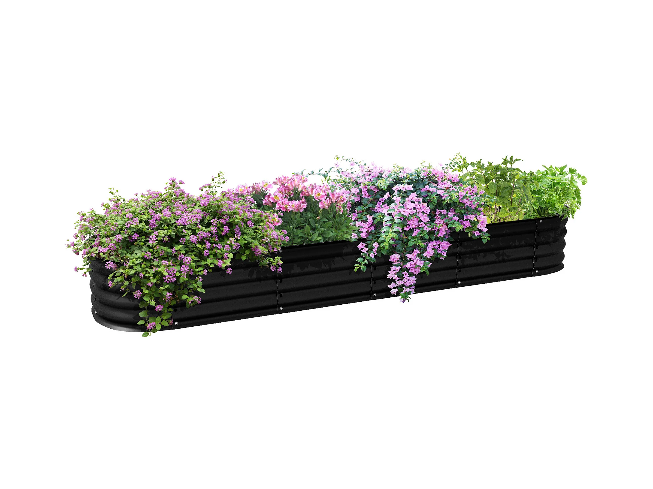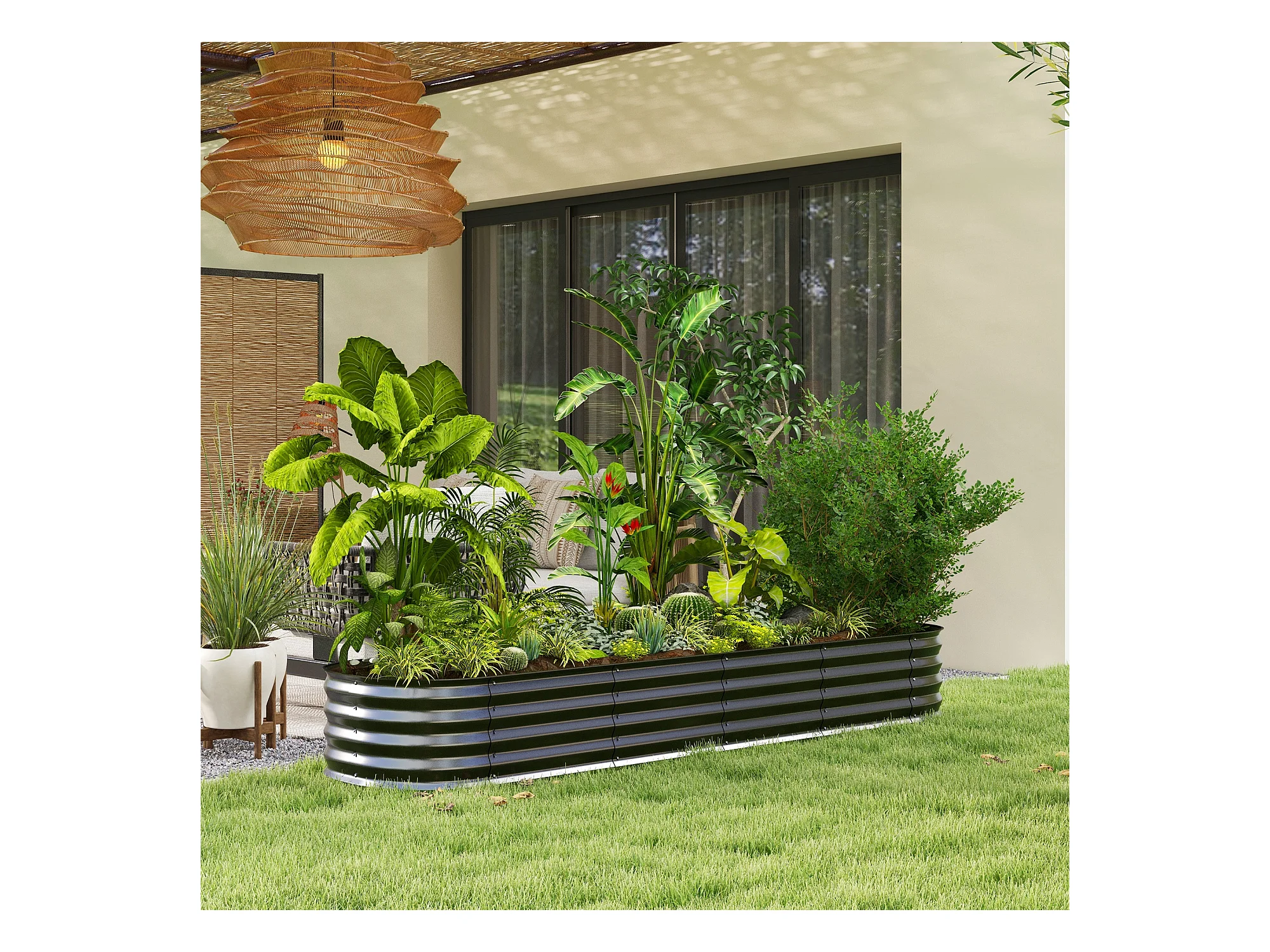 Carré potager de jardin dim. 240L x 62l x 30H cm modulable tôle d'acier ondulée noir