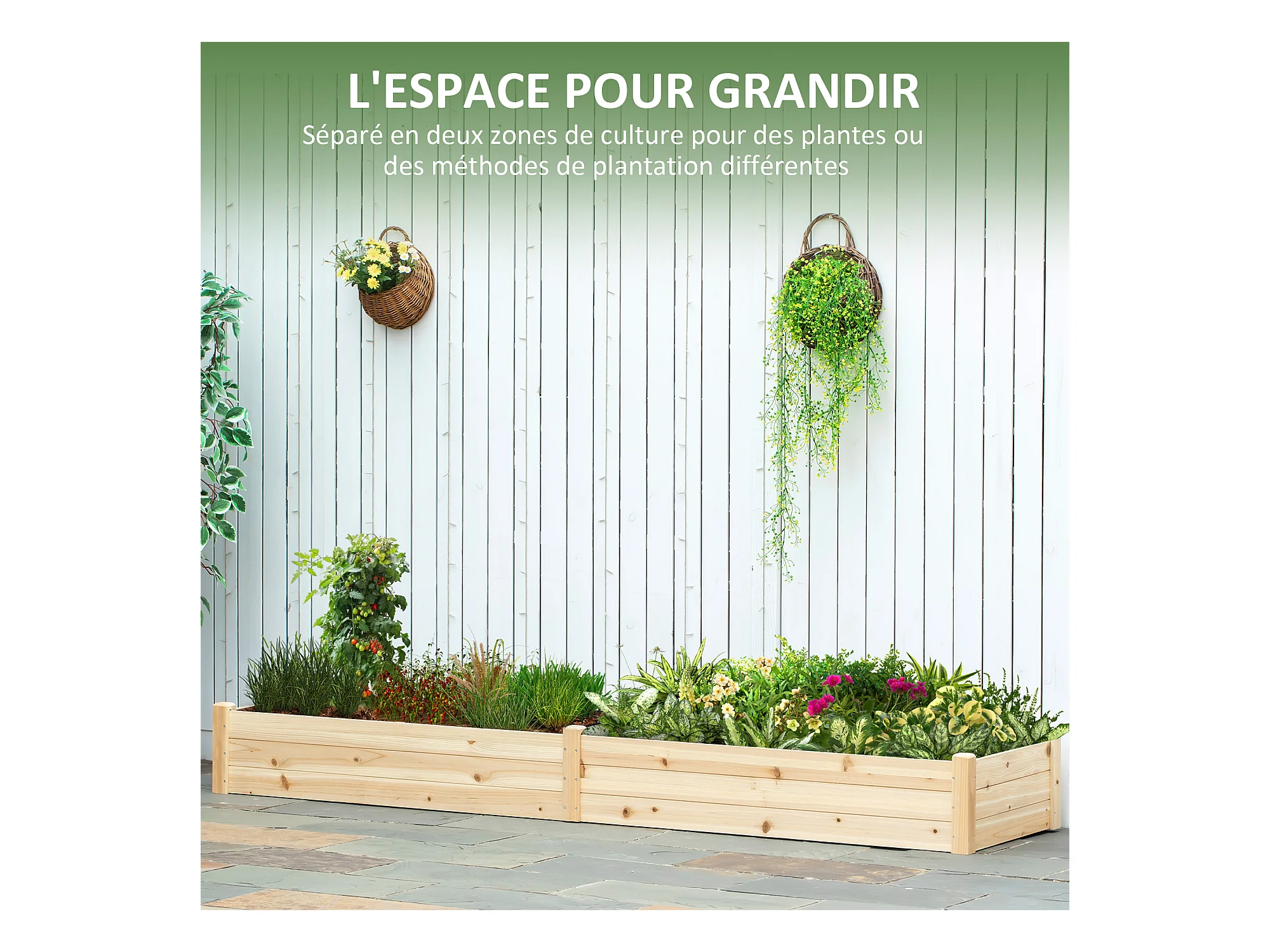 Carré potager de jardin dim. 237L x 60l x 25H cm séparations incluses bois de sapin
