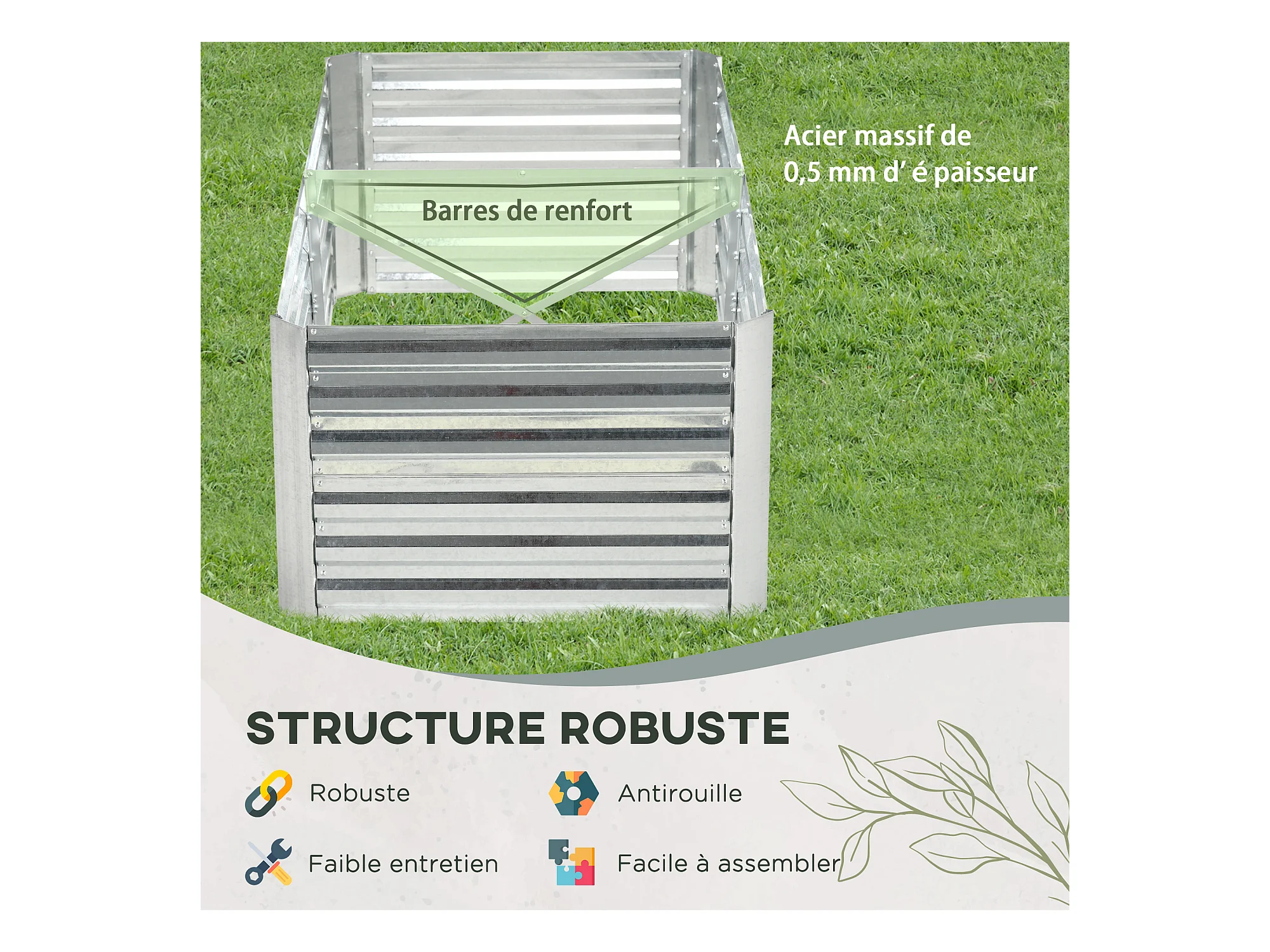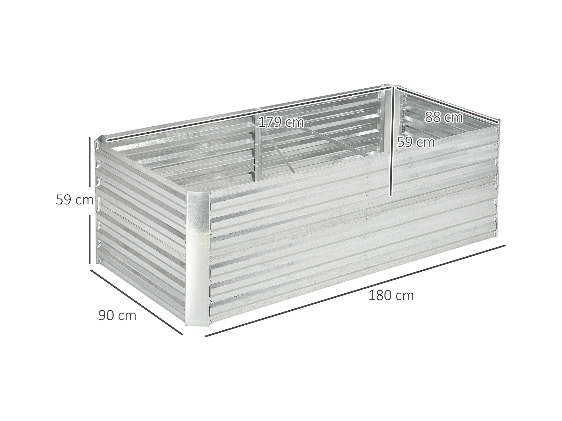 Carré potager de jardin renforcé - dim. 180L x 90l x 59H cm - tôle d'acier ondulée galvanisée
