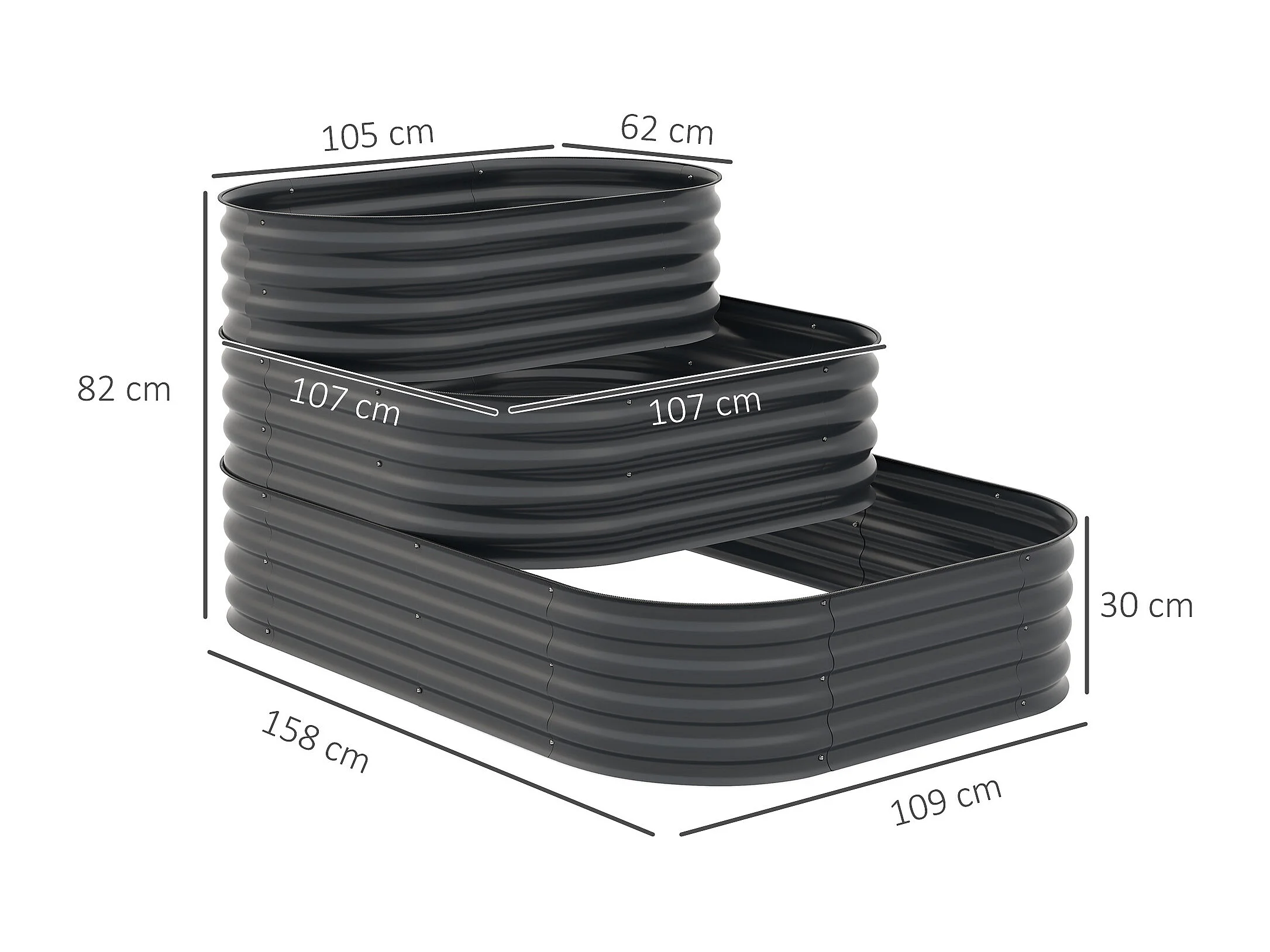 Carré potager jardinière 3 niveaux tôle acier ondulée gris