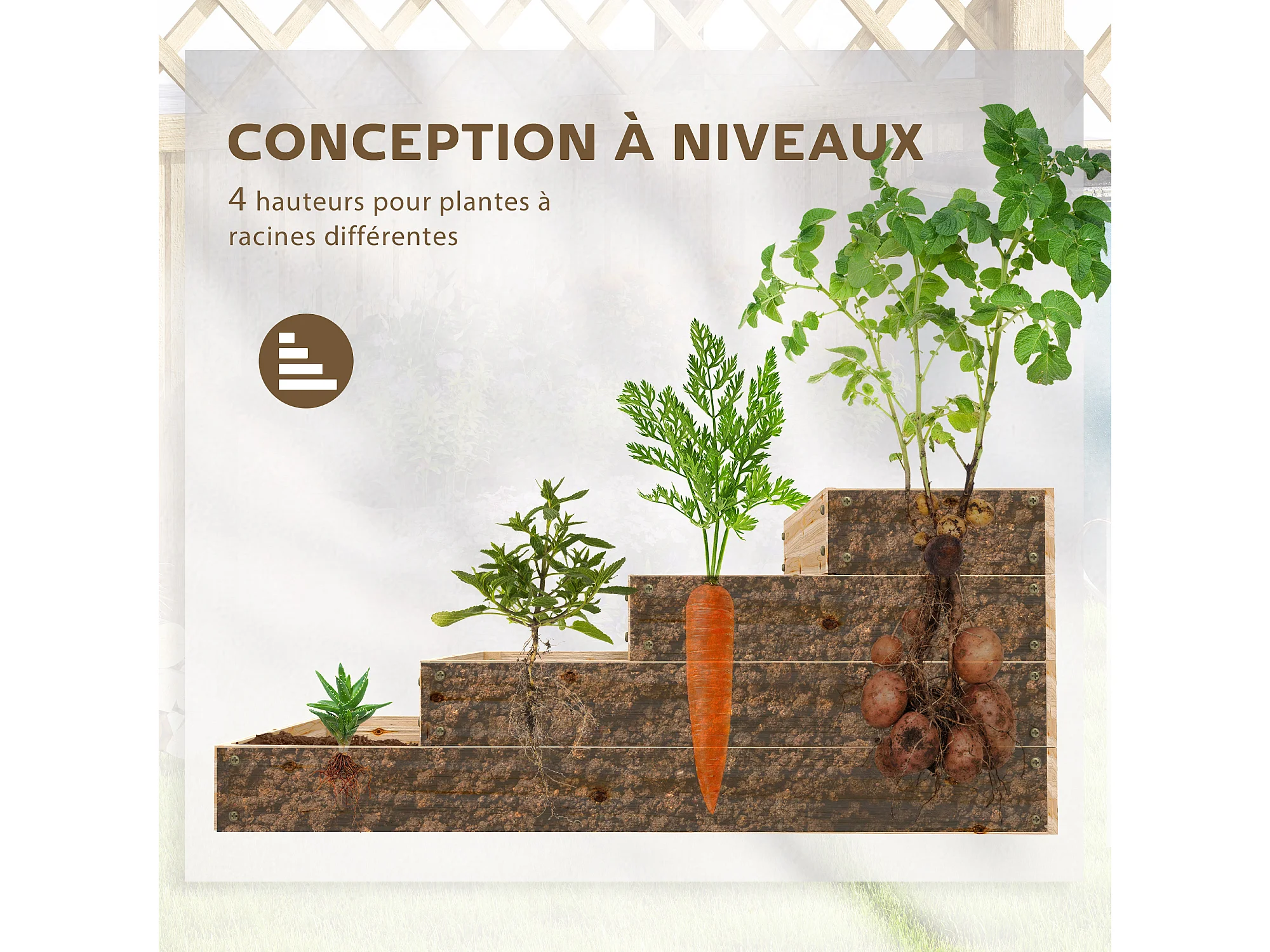 Carré potager jardinière en escalier 4 niveaux dim. 113 x 113 x 46 cm bois sapin naturel