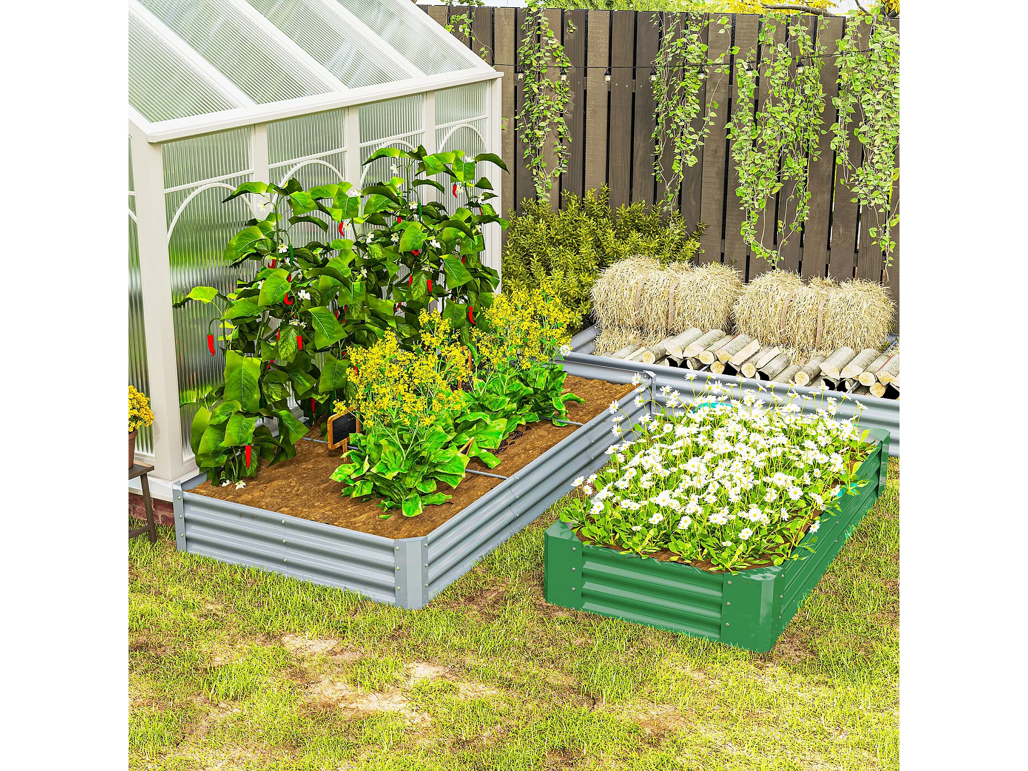 Carré potager rectangulaire dim. 240 x 120 x 30 cm acier galvanisé ondulé argenté