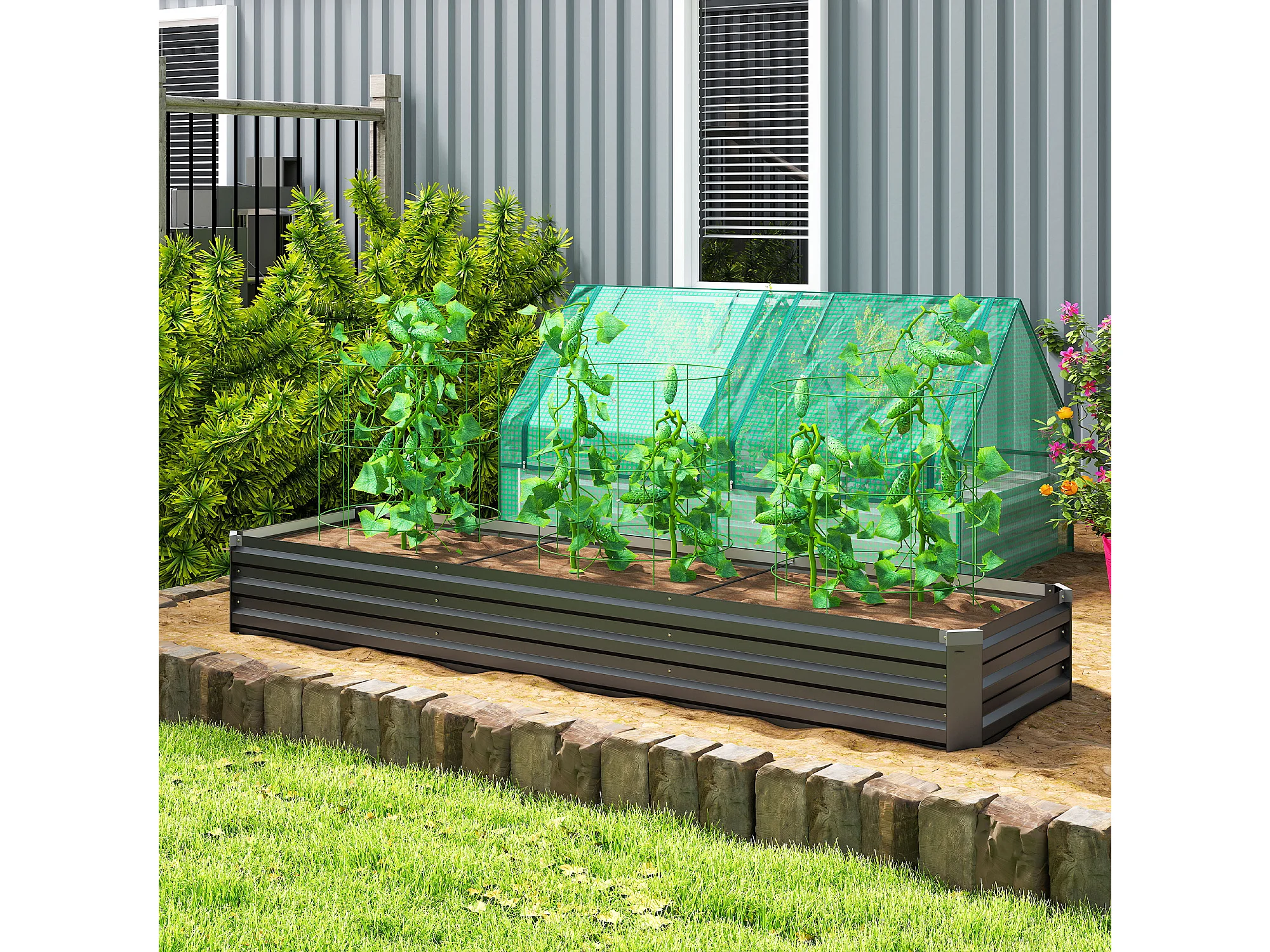 Carré potager rectangulaire dim. 240 x 60 x 30 cm tôle d'acier ondulé anthracite