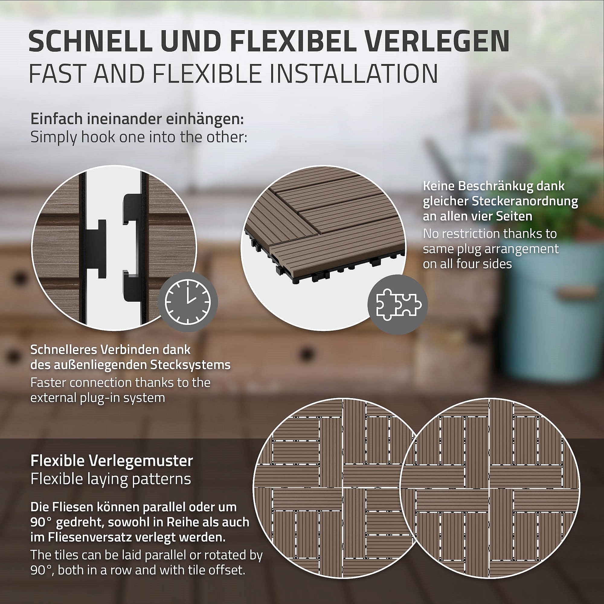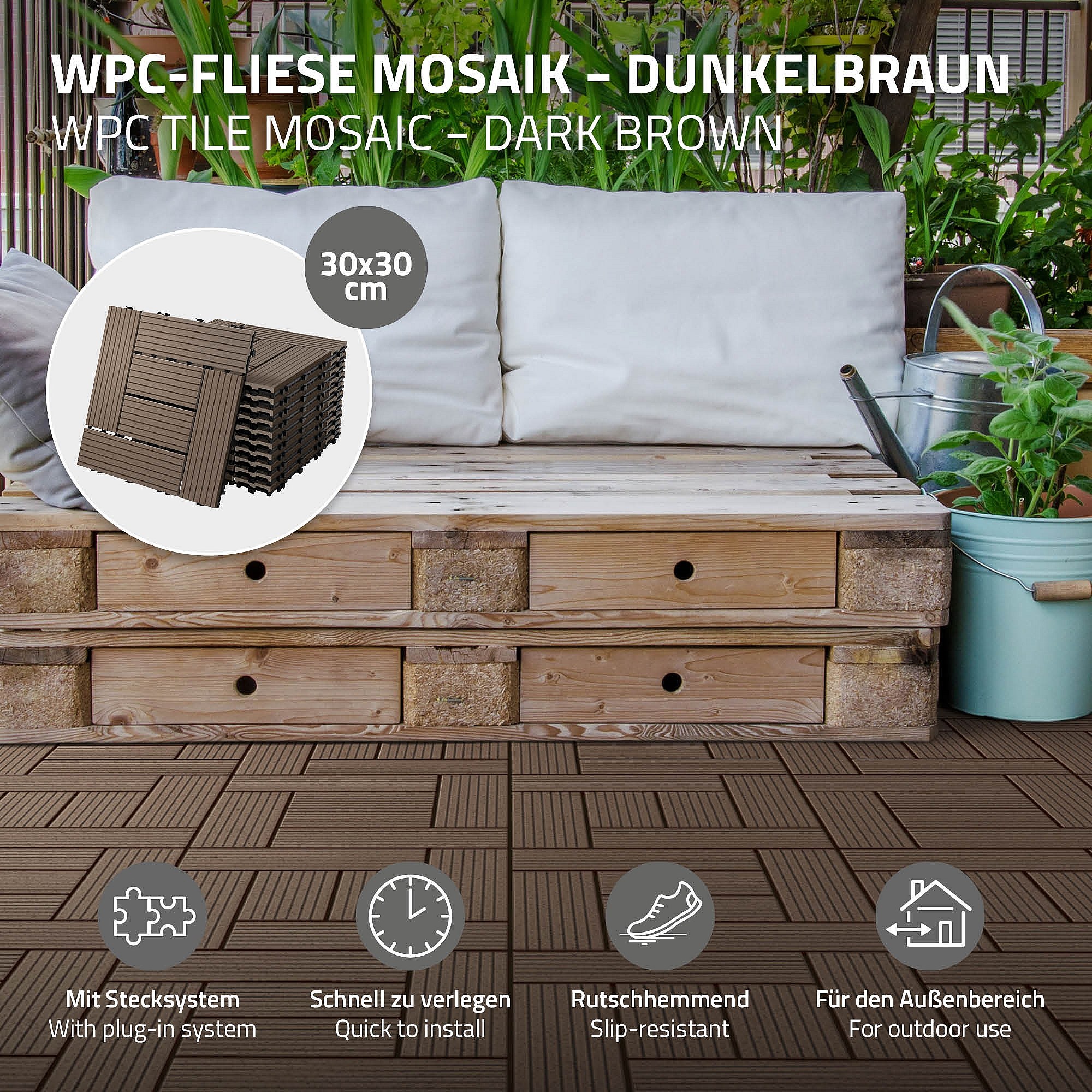ECD Germany WPC Carreaux de Terrasse 30x30 cm - 33 Pièces par 3m² - avec Aspect Mosaïque - Marron