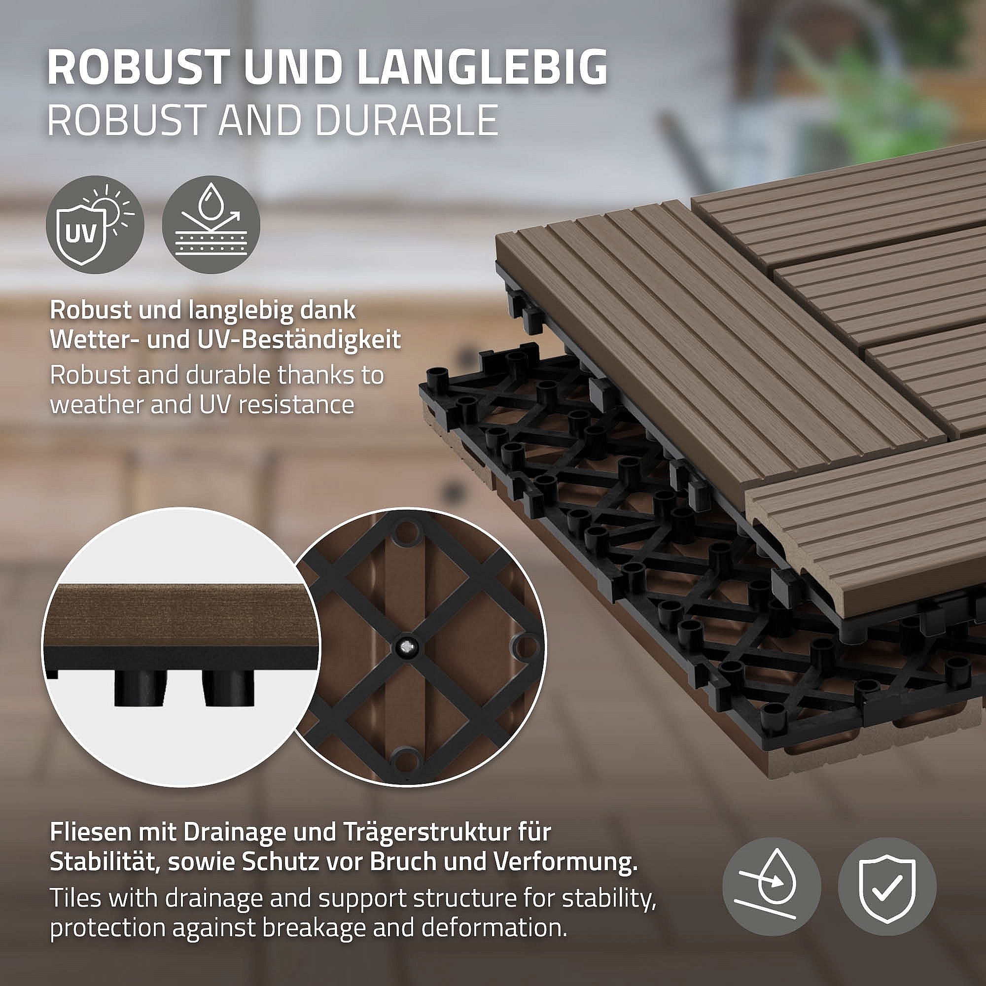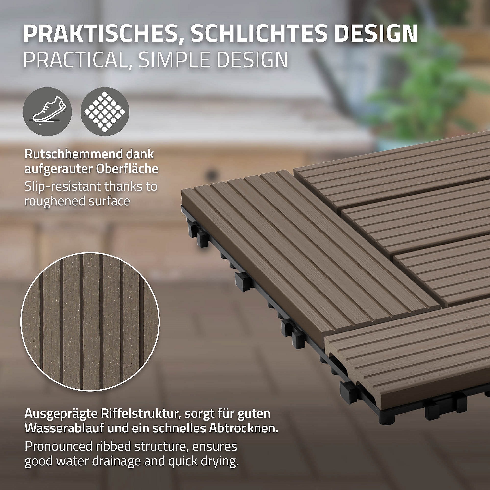 ECD Germany WPC Carreaux 30x30 cm - 33 Pièces par 3m² - avec Aspect Bois - Marron Foncé - Dalles