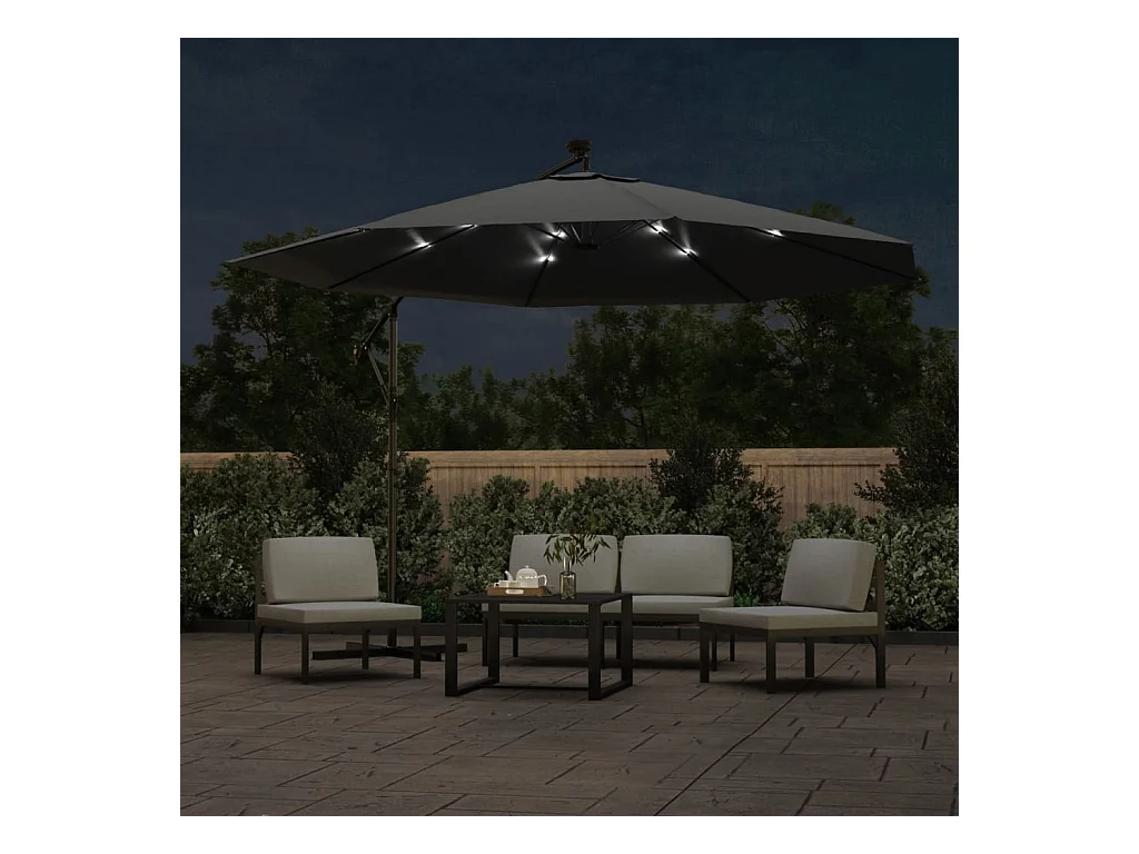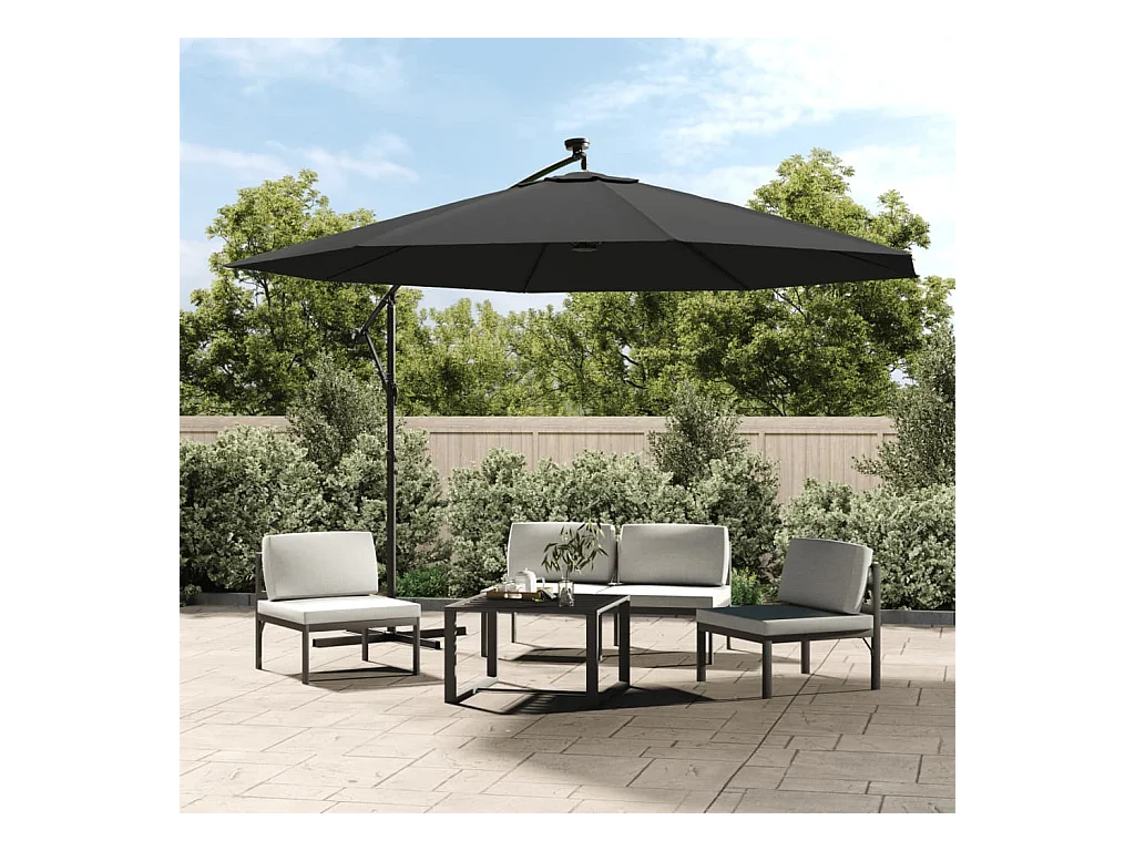 Carrickboy Parasol de jardin en porte-à-faux et lumières LED mât en métal