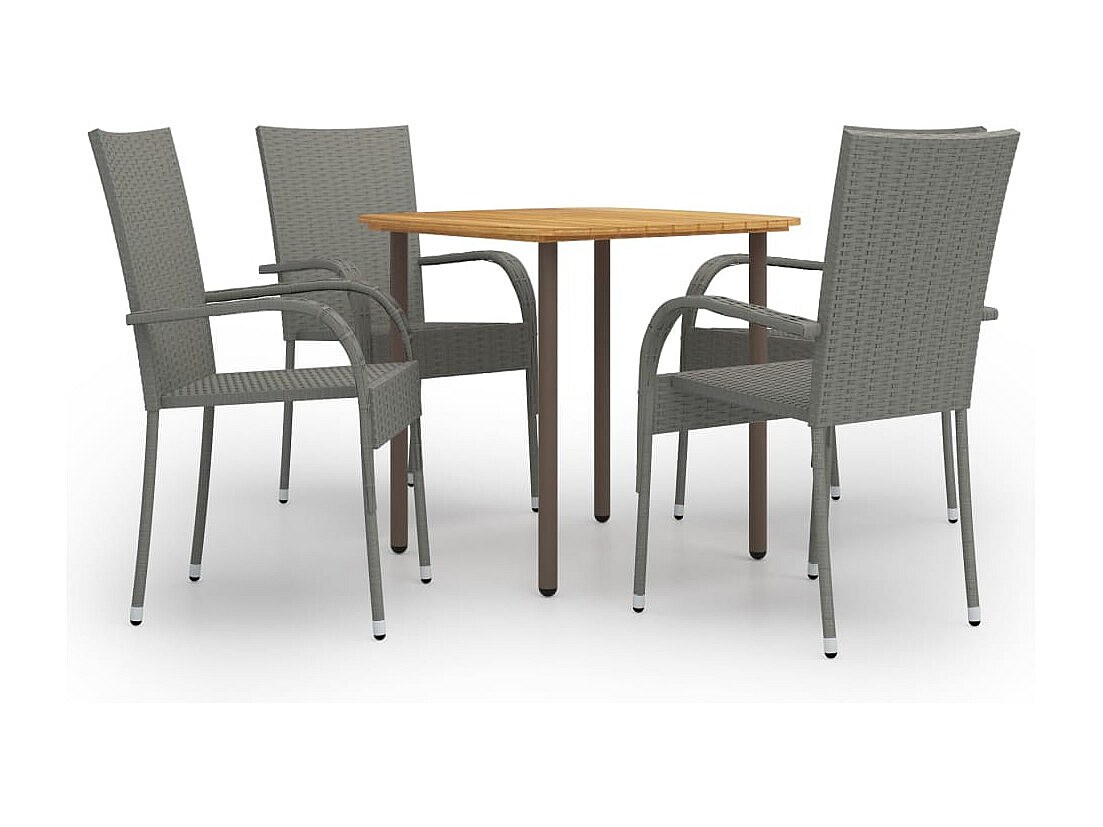 Carroll Ensemble à manger de jardin 5 pcs Résine tressée Gris