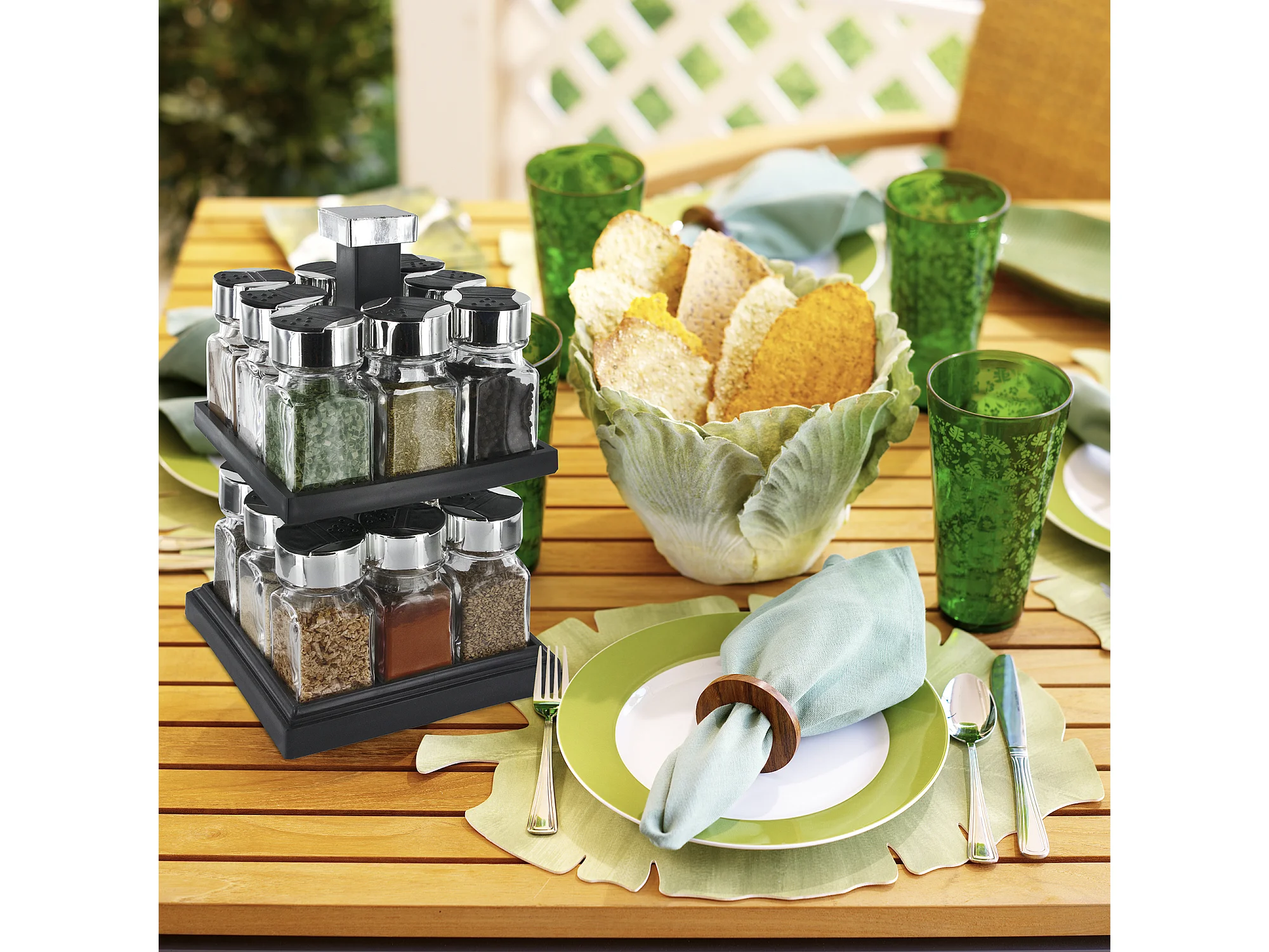Carrousel Carre 16 Pots 2 Etages Couv Plastique Noir